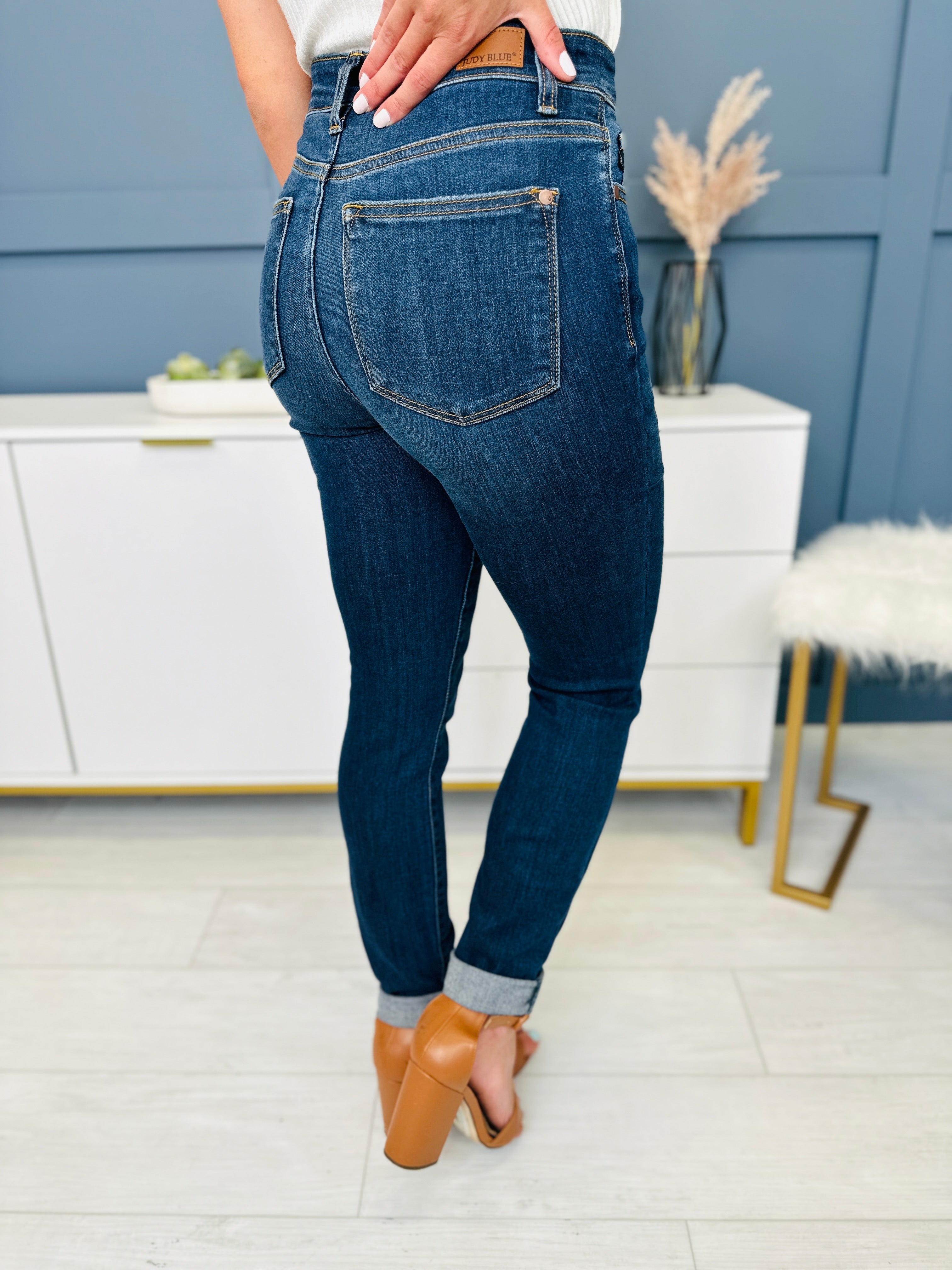 You are sure to be blessed in these nondistressed relax fit jeans from Judy Blue!