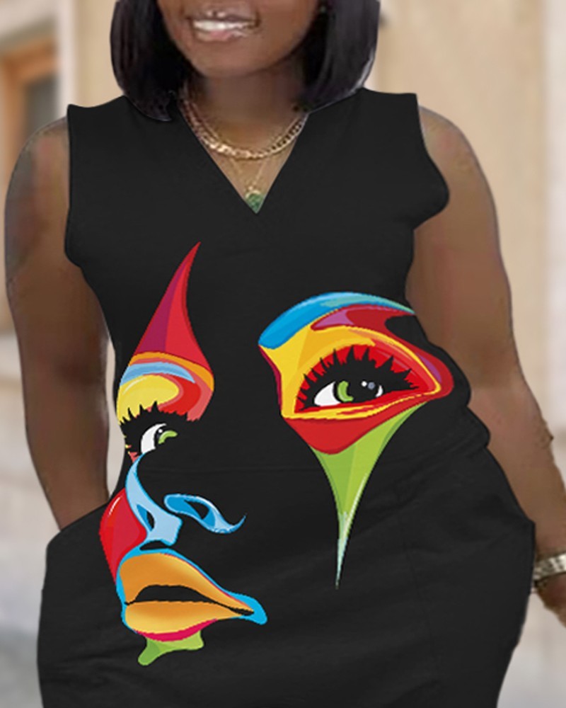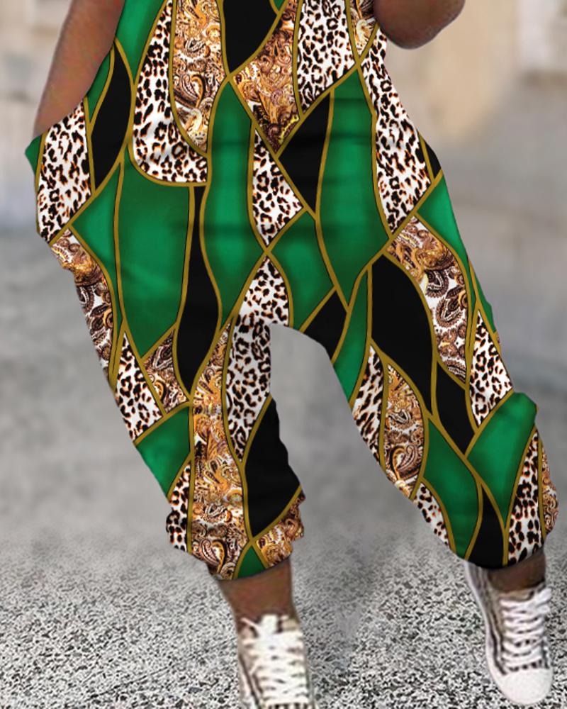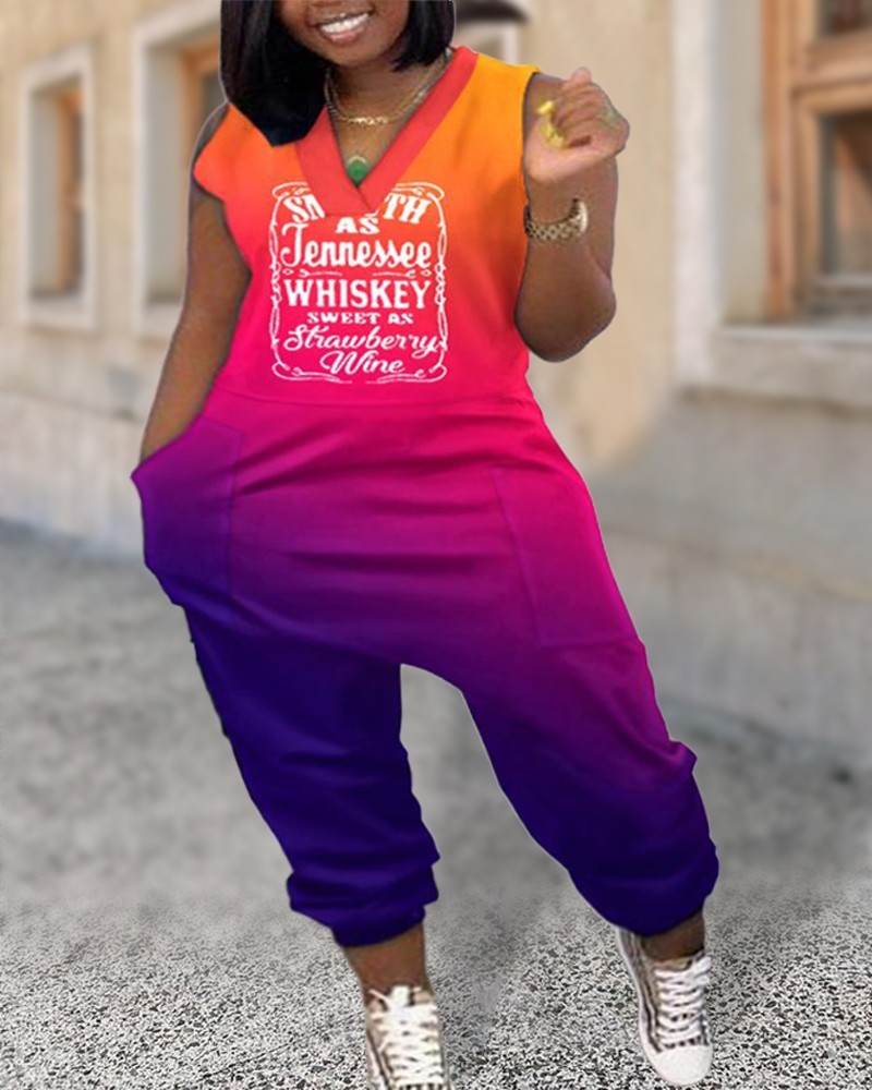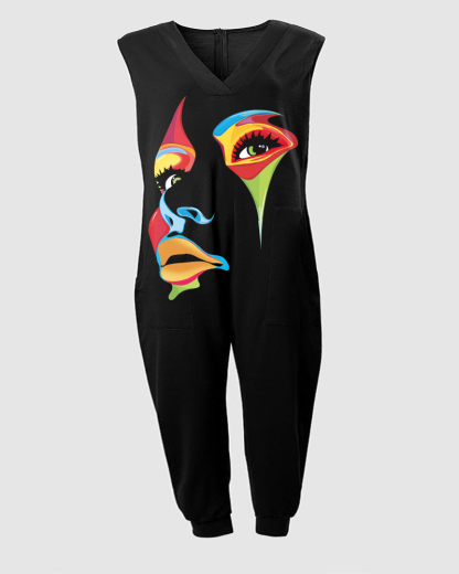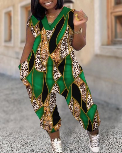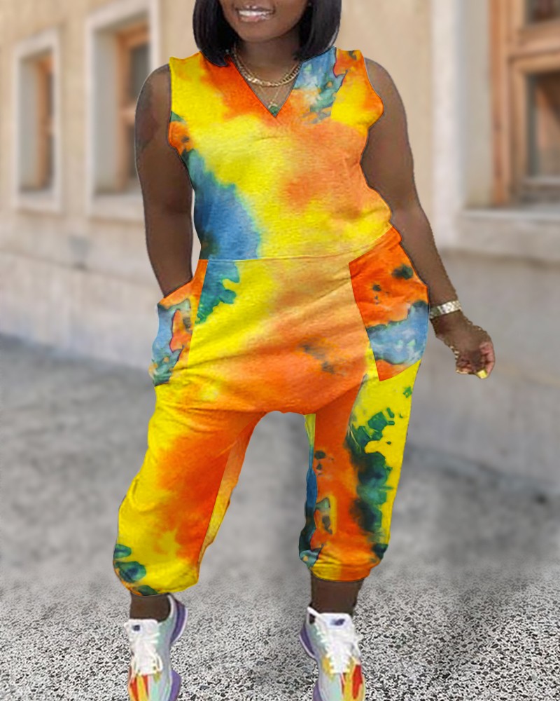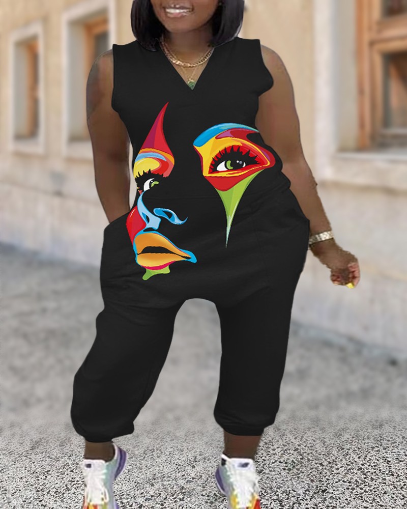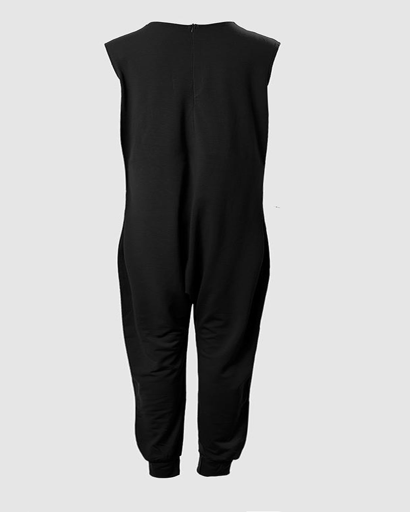 Plus Size Camouflage Print Sleeveless Pocket Design Jumpsuit