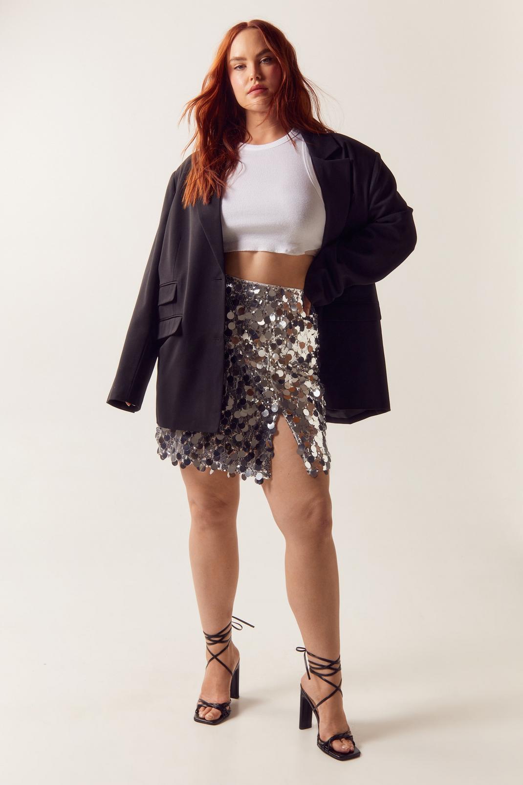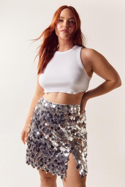 Sequins are always a good idea. Feel party ready in our plus size mini skirt, made in sparkling sequin fabric, with a high waistline, and a flirty leg split. Style it with with a crop top or bralette for a party look that will turn heads, whether you're hitting up your nearest dancefloor, going to a festival, or partying with your girls. The build up has begun. Shop Black Friday clothing deals now.