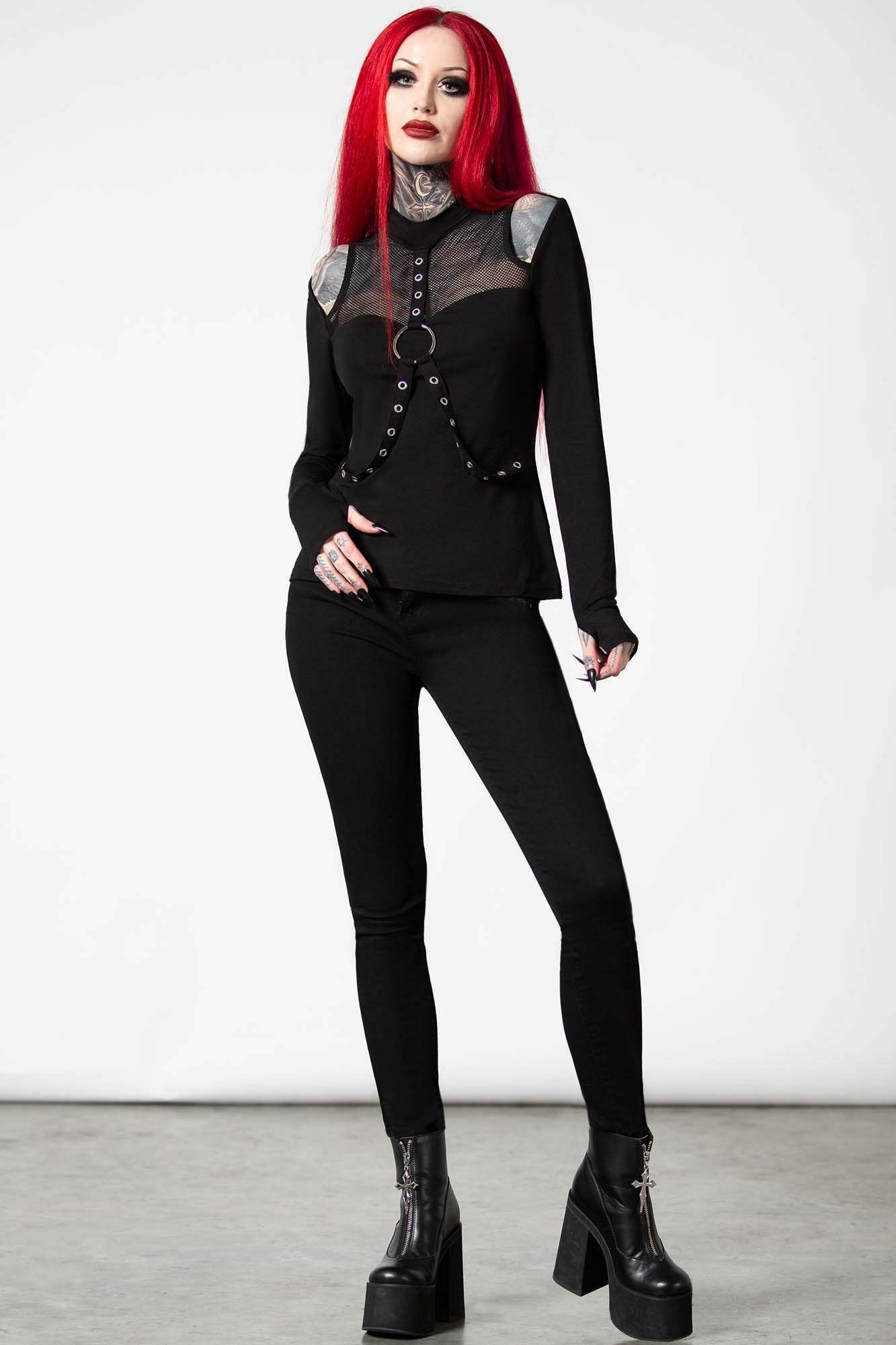 POGO.- Soft stretch fabric.- Fishnet and choker details,- Sweetheart neckline.- Statement straps.- Thumb holes.- Fitted.Wash Cold - Gentle Cycle.With KILLSTAR branding, 95% Rayon, 5% Elastane.
