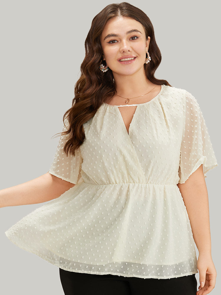 Polka Dot Keyhole Mesh Gathered Flutter Sleeve Blouse