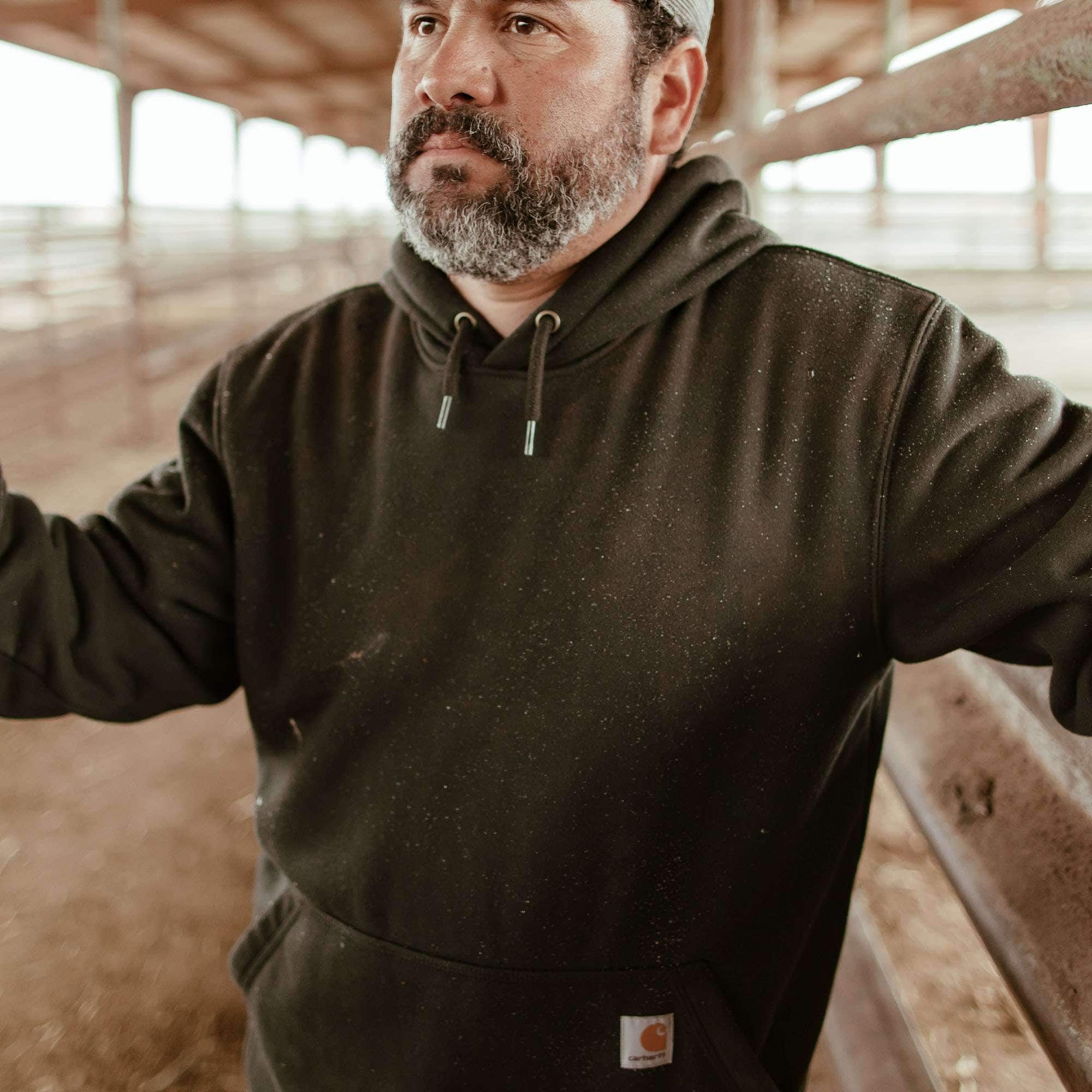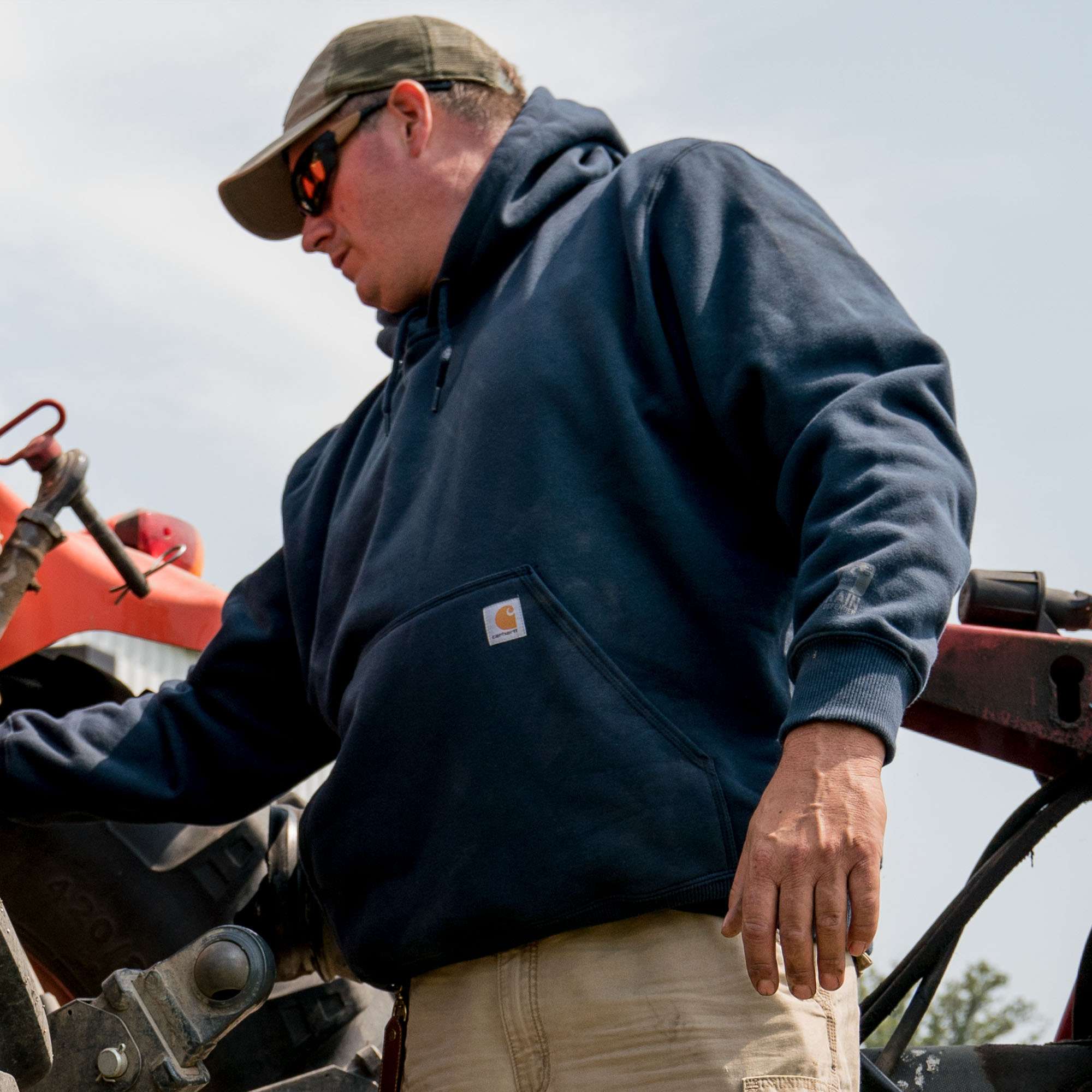 Workday or weekend work, this men's heavyweight hoodie gives you the familiar comfort of a favorite sweatshirt with the added benefit of keeping you dry in light rain. There's a hidden security pocket inside the handwarmer pocket in the front. Previously known as the Rain Defender® Paxton Heavyweight Hooded Sweatshirt