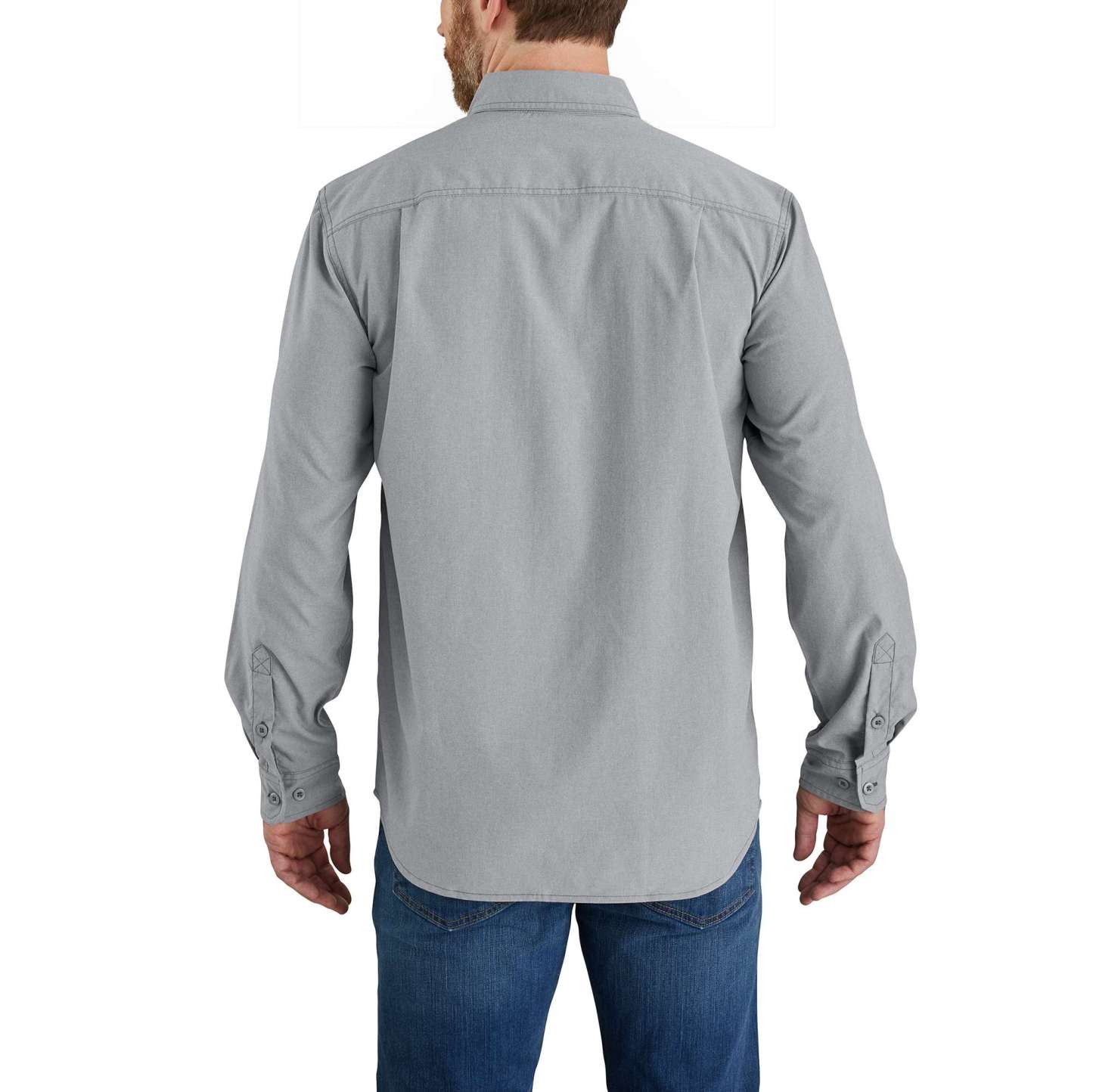 This comfortable button-down will be a go-to for your crew on hot days when they want extra coverage. This men's Carhartt long-sleeve shirt fights sweat and odor. Made from lightweight chambray with UPF 50+ and extra flex for easy movement. Features two chest pockets with a pen stall.
