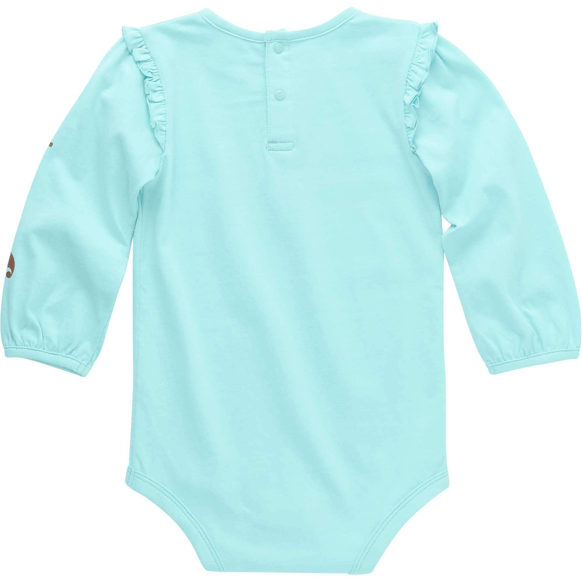 She'll fit right in for days on the farm and look good when she's in the city, too, in this baby girls' bodysuit. Ruffles and soft cotton may seem like it's frilly. But Carhartt on the sleeve lets you know it'll last for a long time.