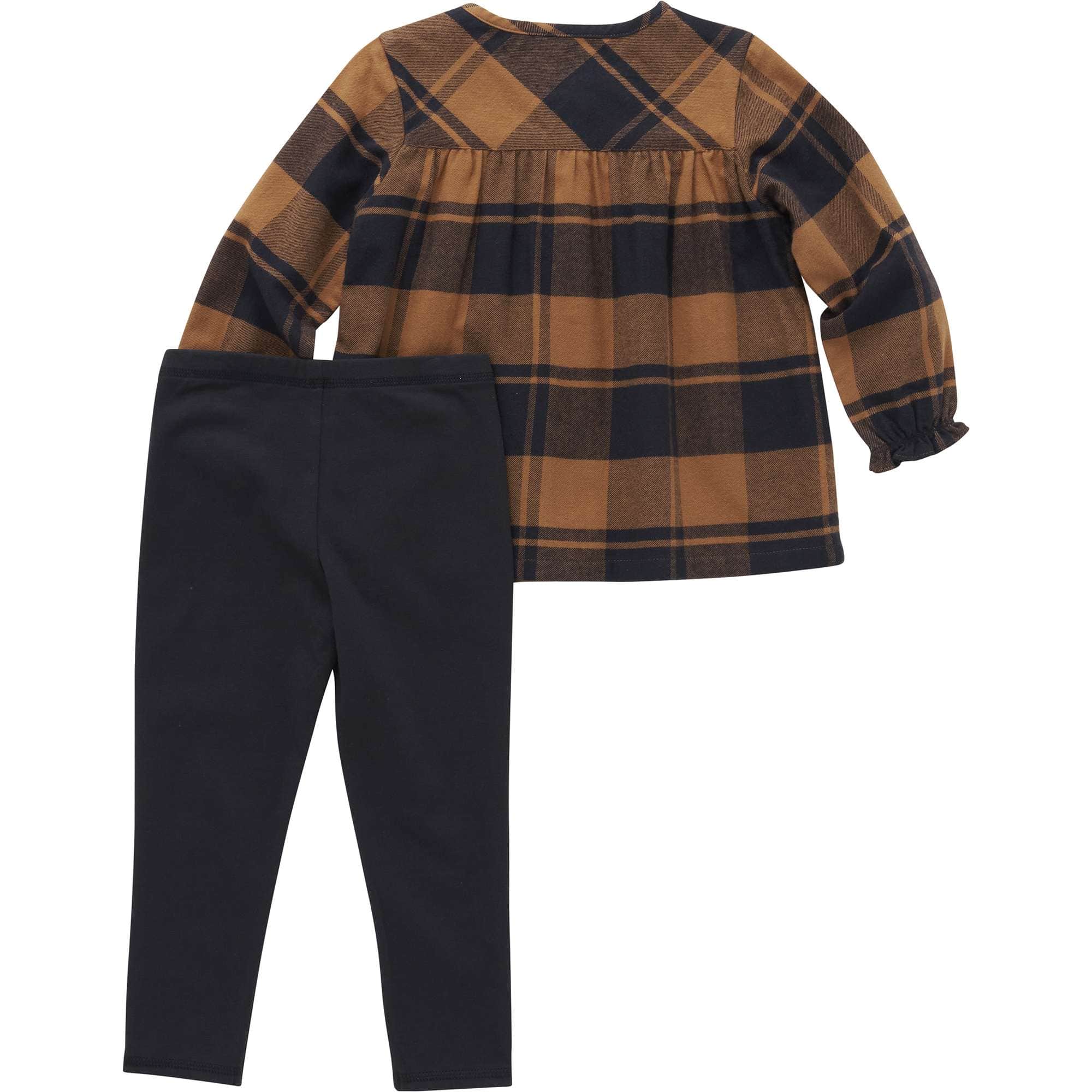 Don't let how adorable it is fool you: this baby girls' top and leggings set is Carhartt tough. The outfit includes a cotton flannel blouse with yarn-dyed plaid and stretch-cotton leggings. Durable knit construction makes 'em last through the baby stage and beyond.