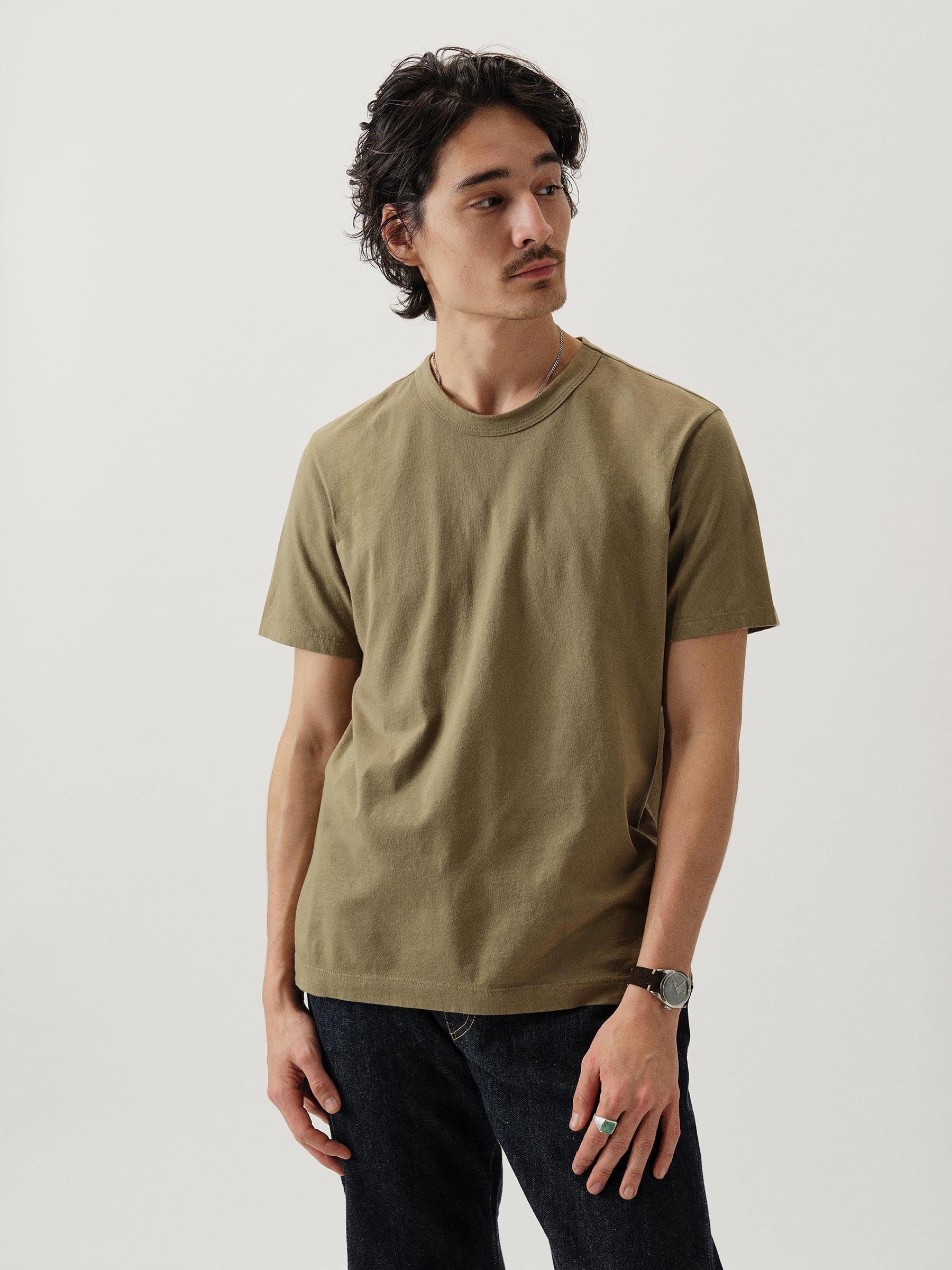 Classic fit short sleeve crewneck with a straight hem. Made at BM Knitting Mills in Mohnton, PA, from USA-grown and milled 140 GSM jersey knit from long-staple Supima cotton with a soft, smooth hand. Garment washed with enzymes and softener for a lived-in feel.