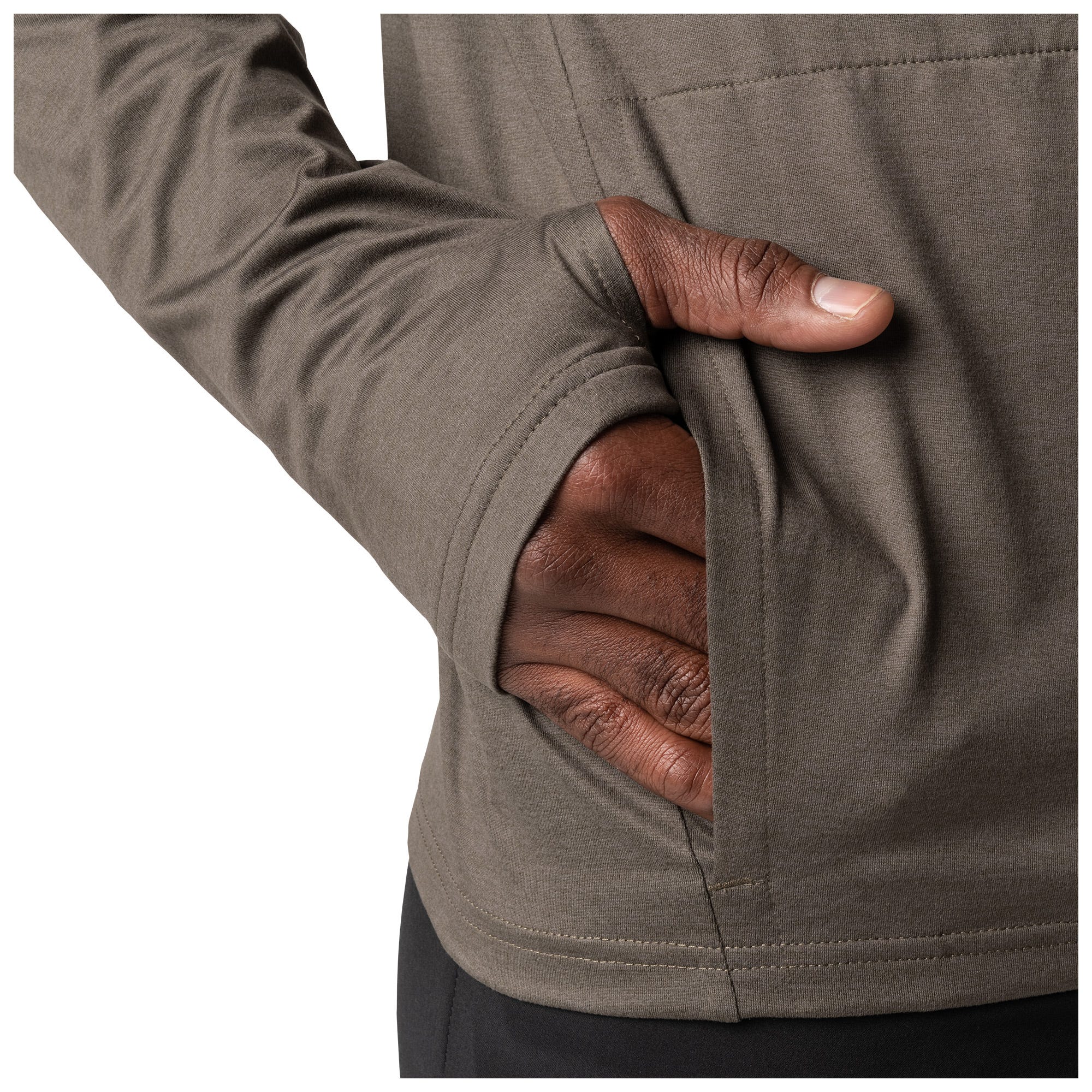 - Thumbholes at sleeve openings
