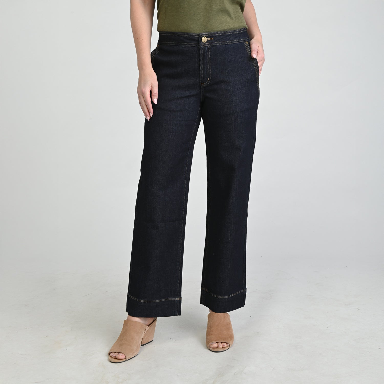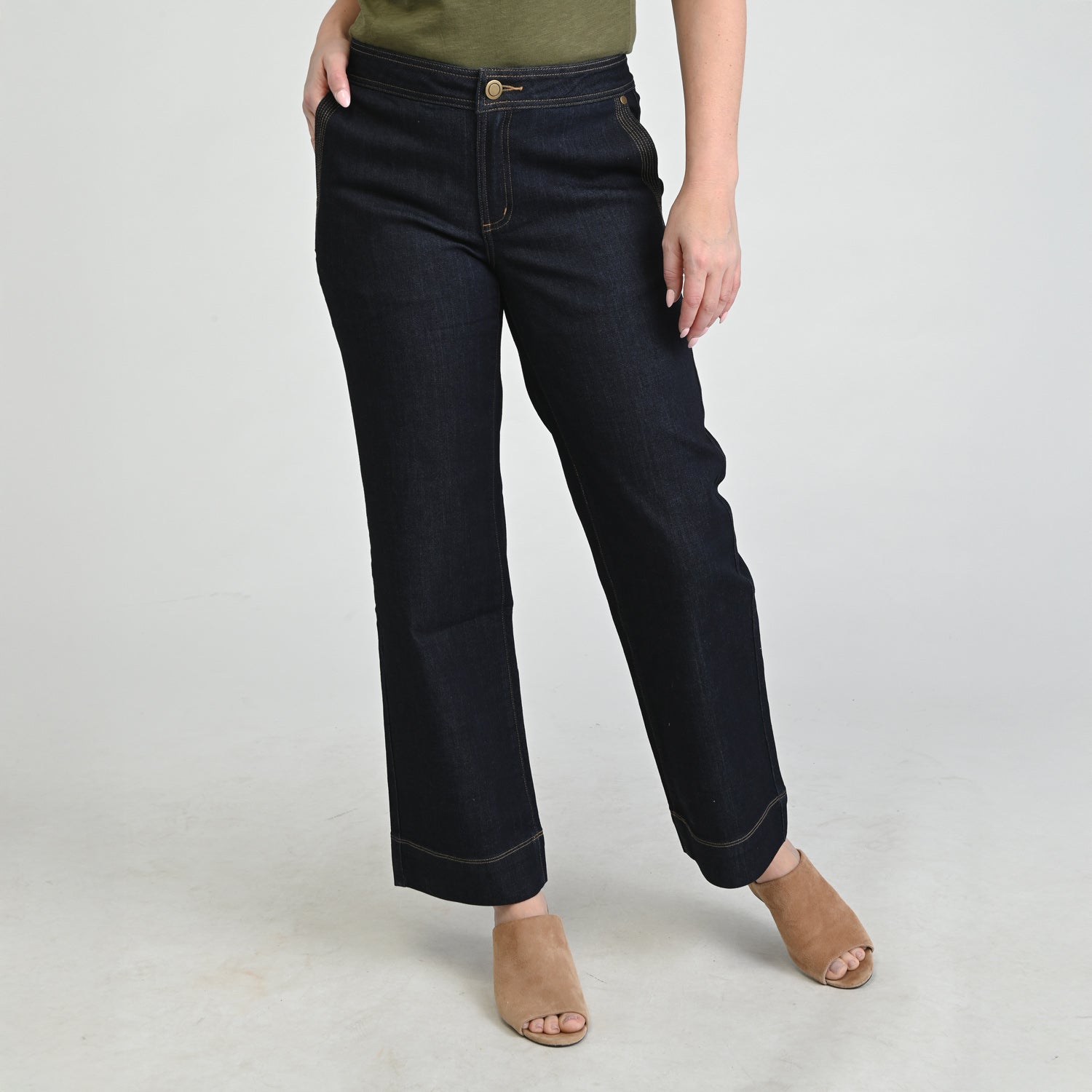 Elevate your everyday denim with our Relaxed Fit Wide Leg Pant, designed with thoughtful stitching details and a rich rinse wash for a polished finish. The unique rounded back pockets add a modern twist to this effortlessly cool and comfortable silhouette.