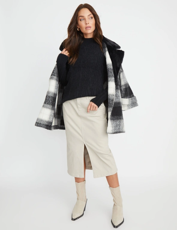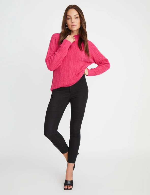 Snuggle up in style with the Rockmans Funnel Neck Fluffy Cable Jumper! This cosy piece is like wrapping yourself in a cloud, perfect for those chilly days when you need both warmth and a dash of chic. With its trendy funnel neck and luxurious fluffy texture, this jumper is the ultimate blend of comfort and fashion. Pair it with your favorite jeans for a laid-back look or dress it up with a skirt for a cosy night out. Either way, you're bound to turn heads and feel fabulous!