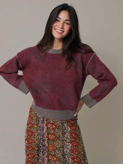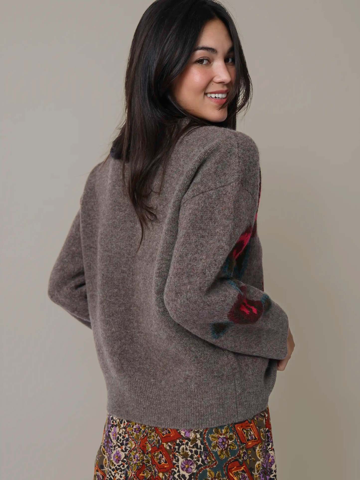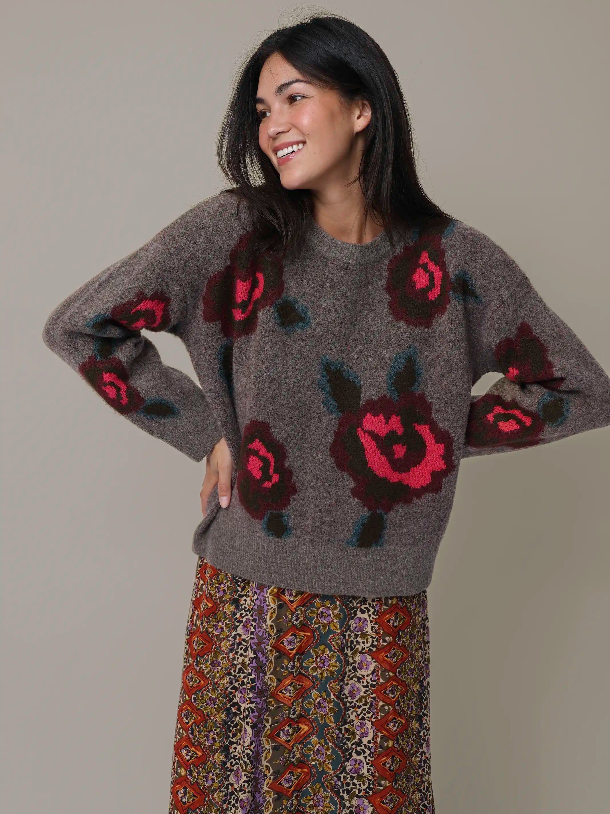 Rosie Reversible Jacquard Pullover Sweater - Stone Grey Rose