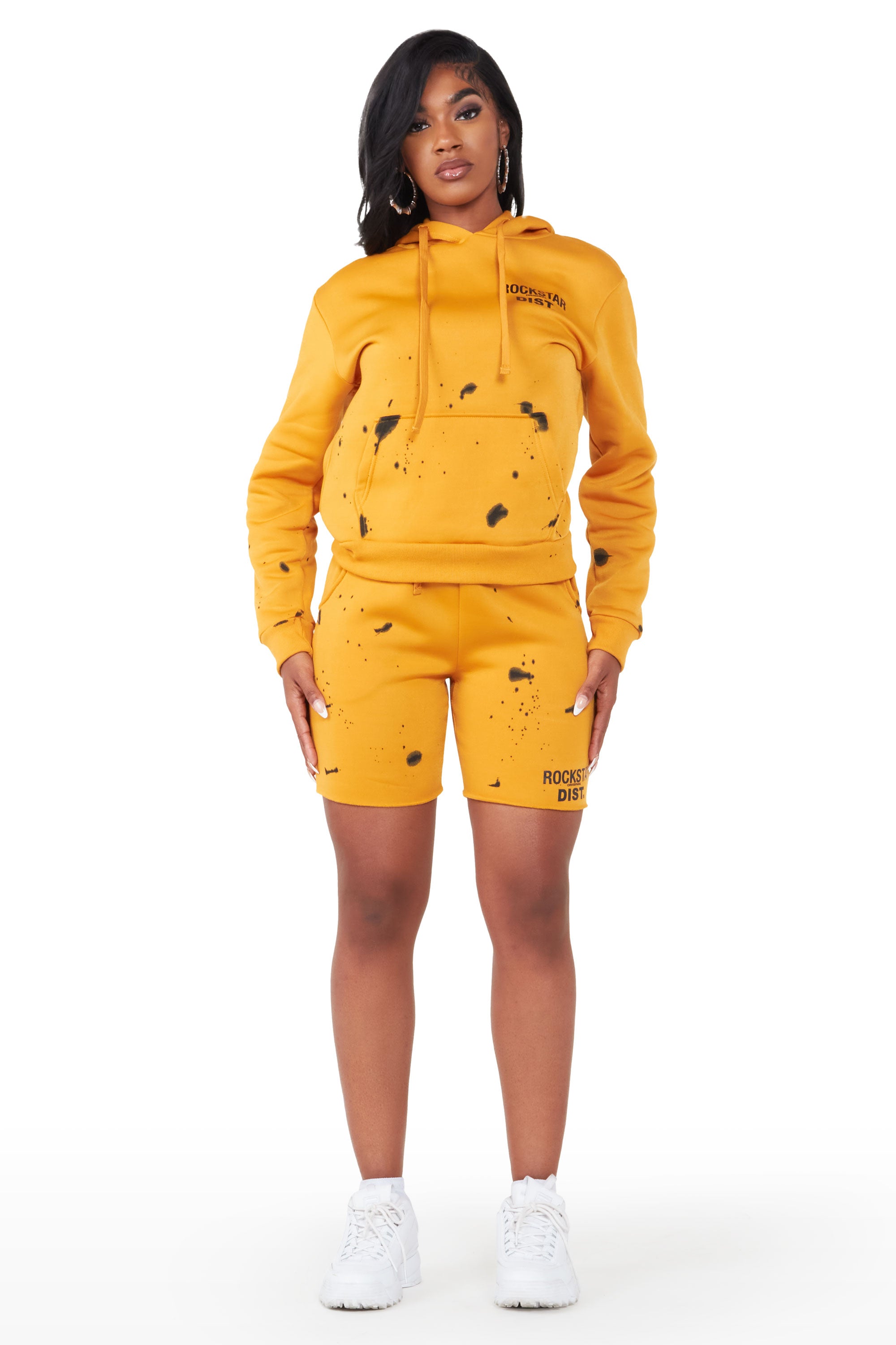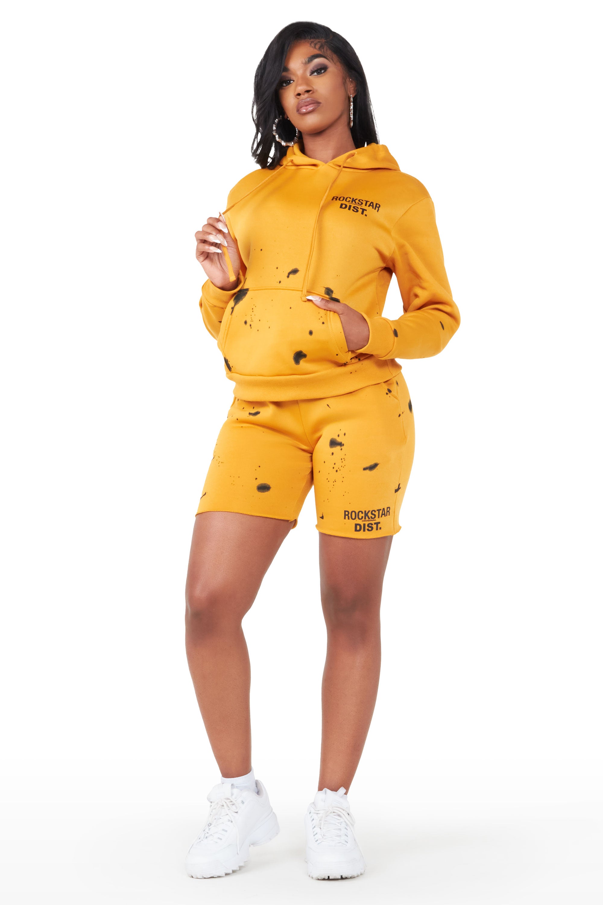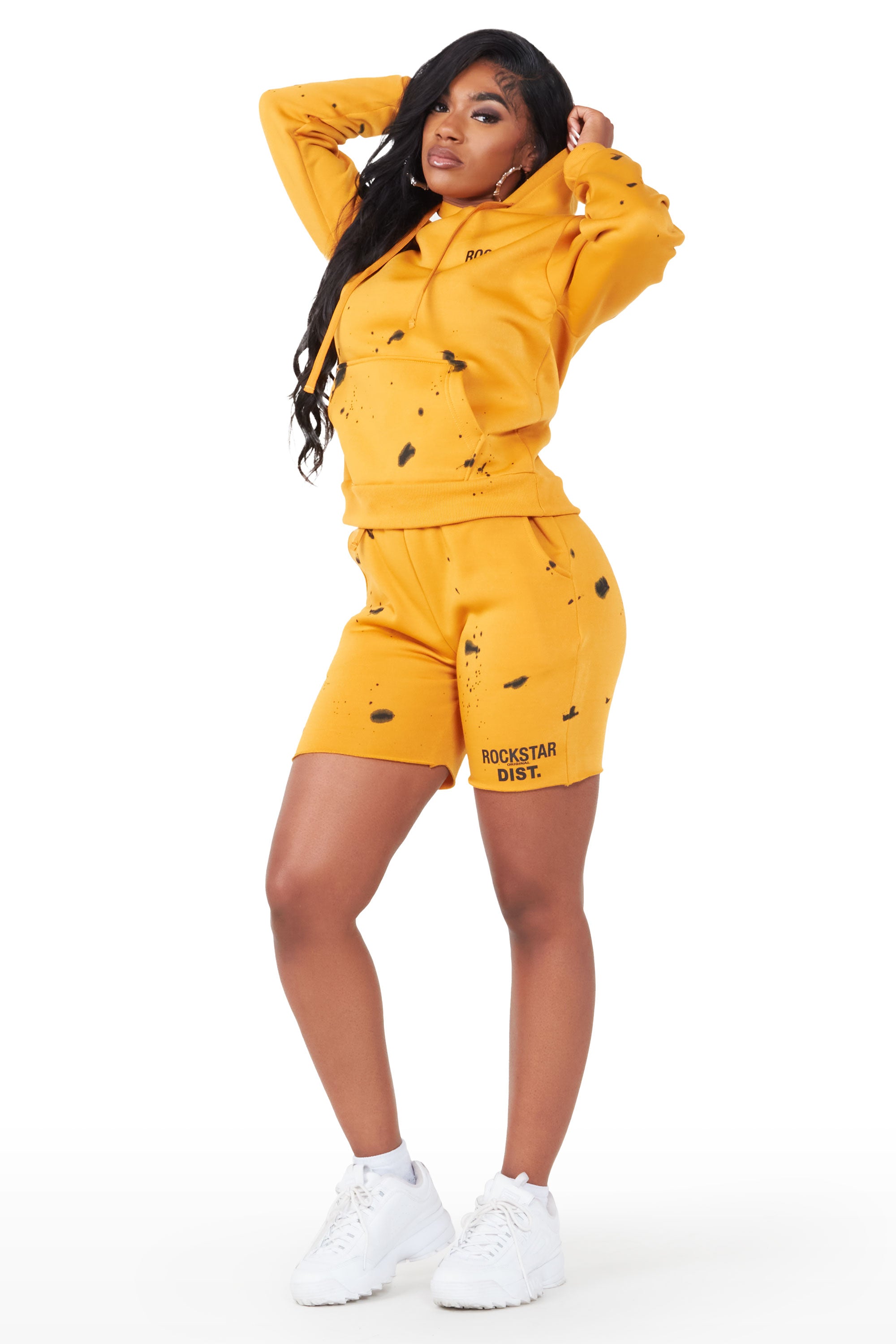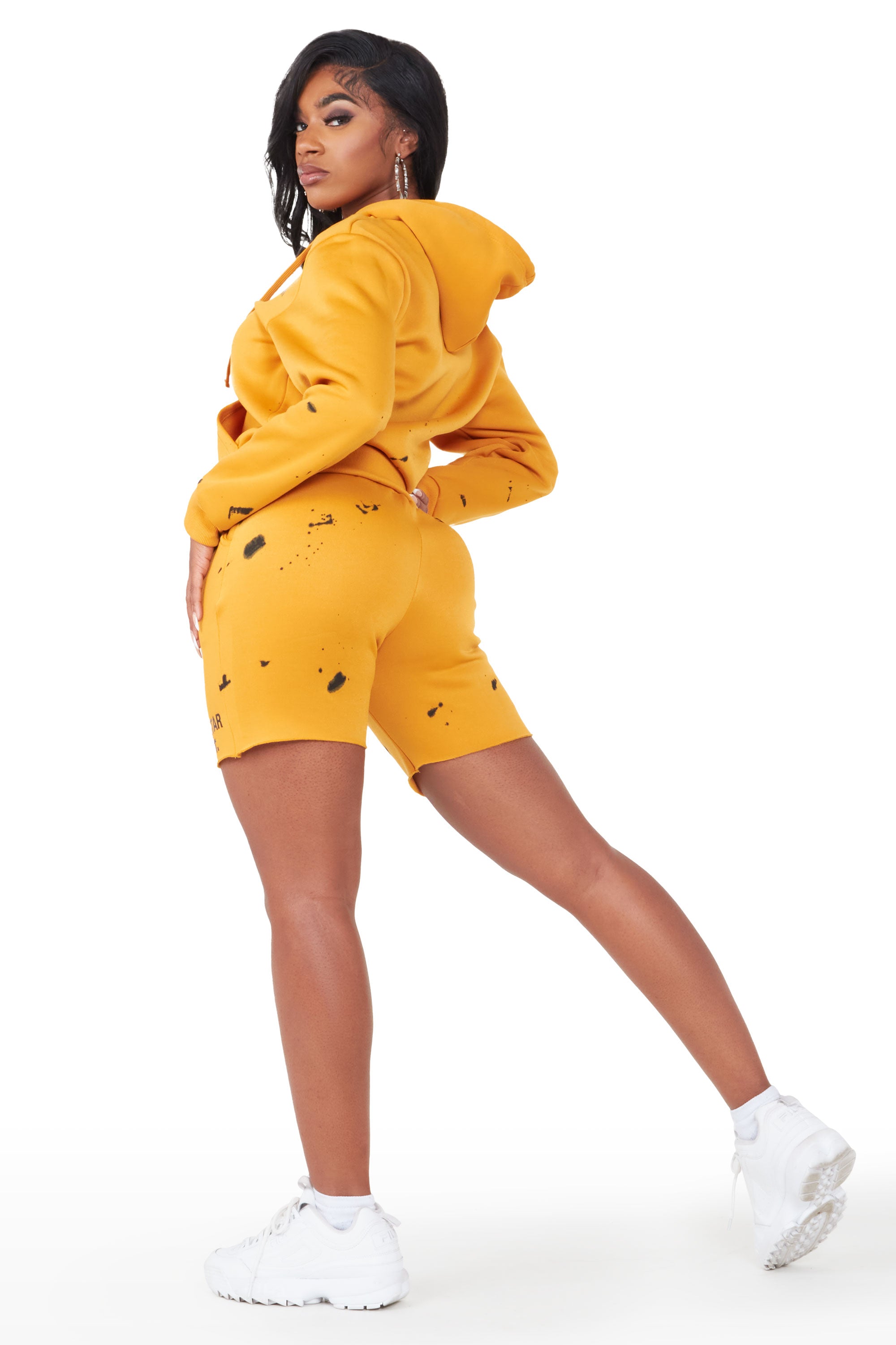 A two-piece booty shaping biker short set for women in mustard. Designed with organic cotton for a lightweight everyday set.