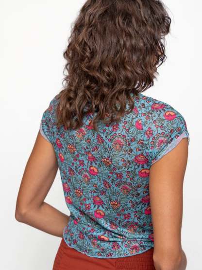 Simone Mesh Tee - Turquoise Pink Fan Floral