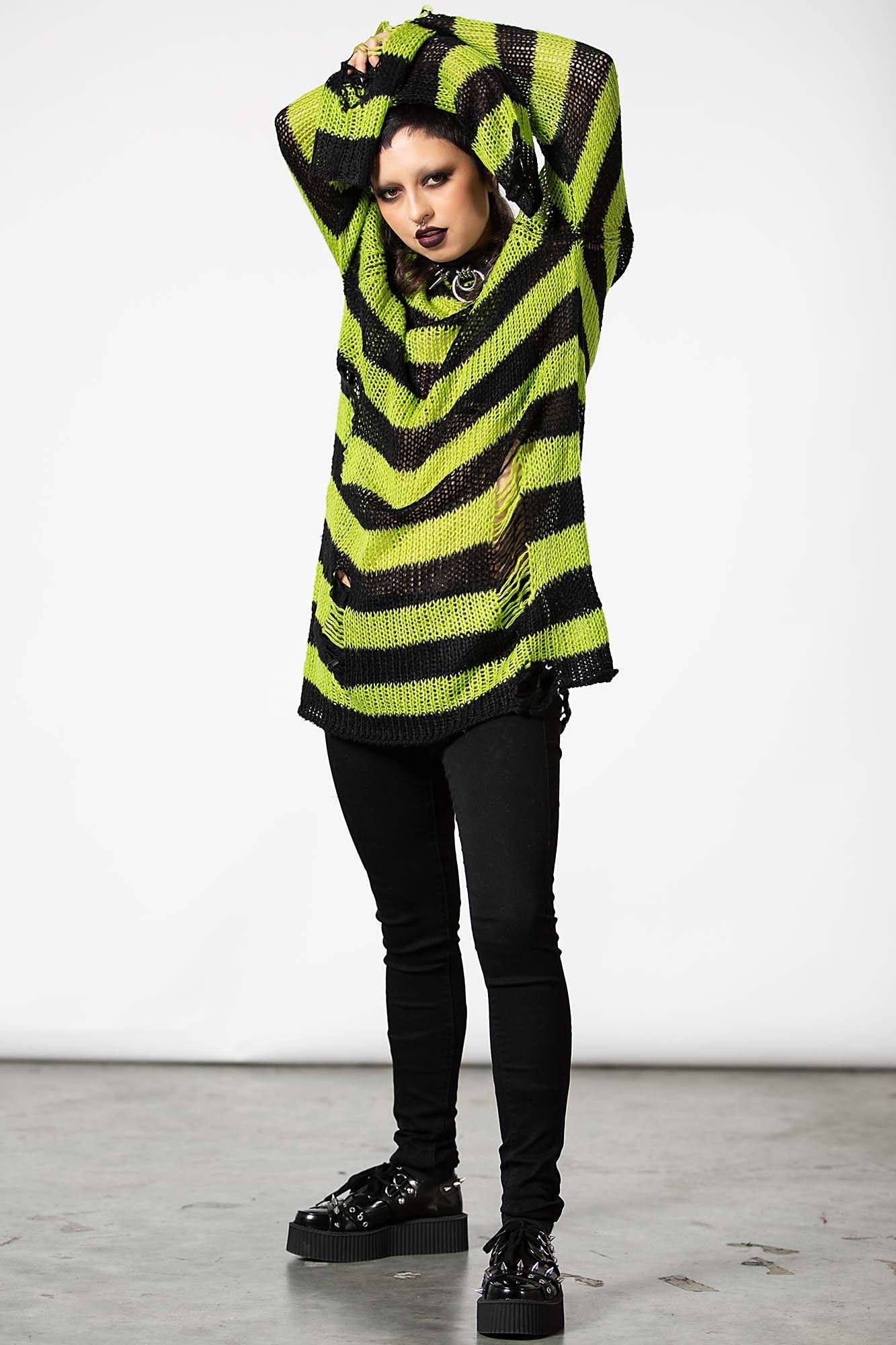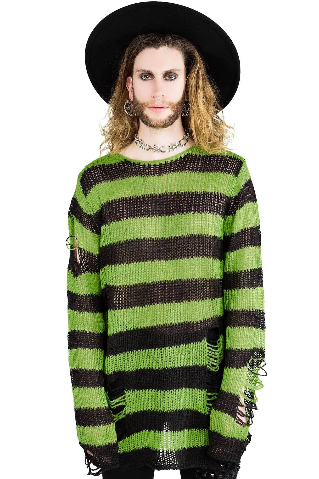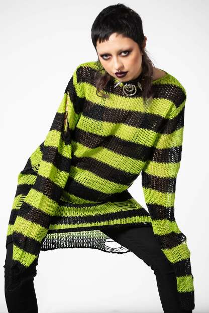 SLIMER.- Luxe Soft Knit.- Contrast Stripe.- Long-Length Shape.- Distressed Detailing + Back.- Relaxed Fit.Wash Cold - Gentle Cycle.with KILLSTAR Branding, 100% Acrylic.