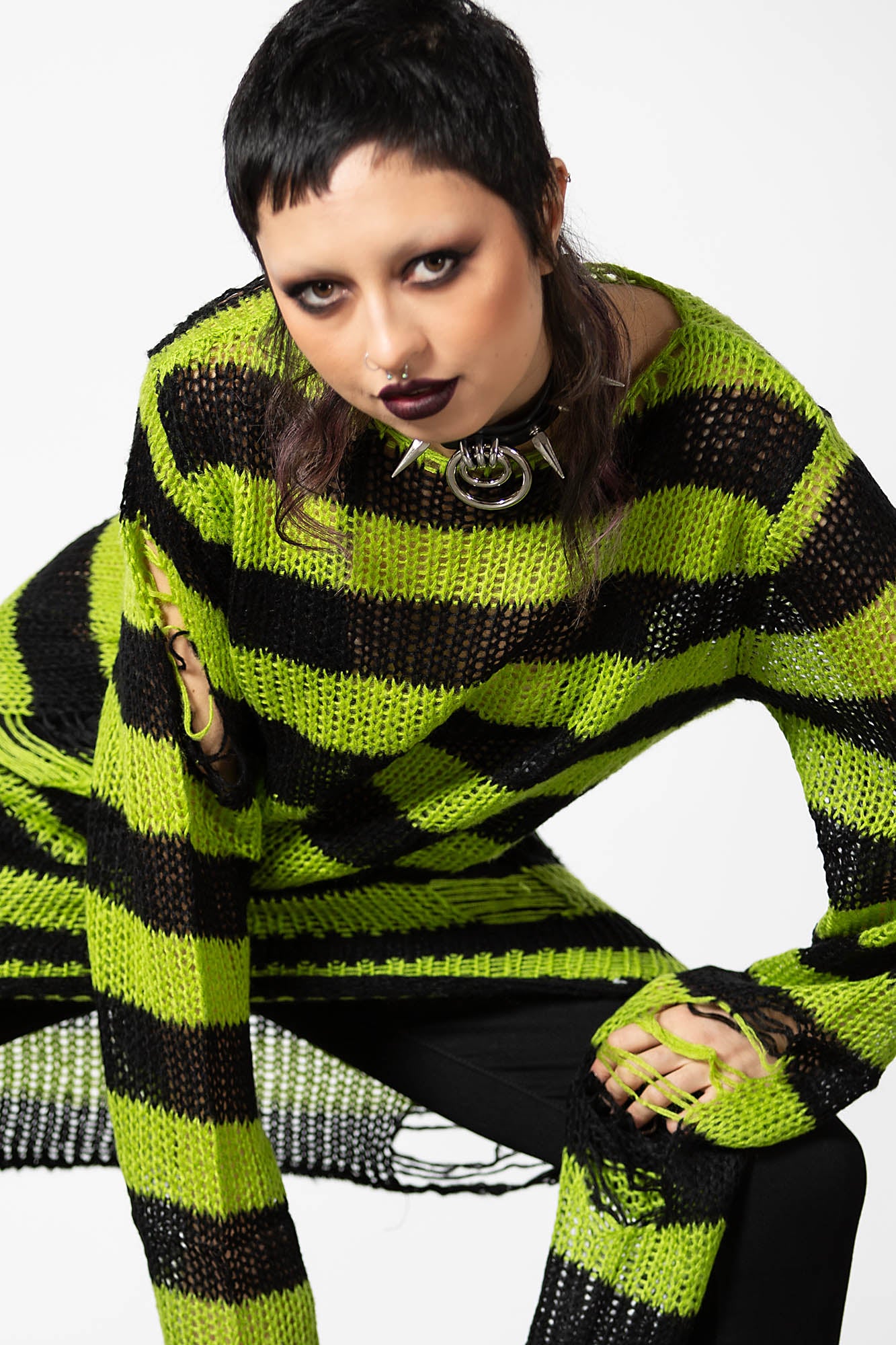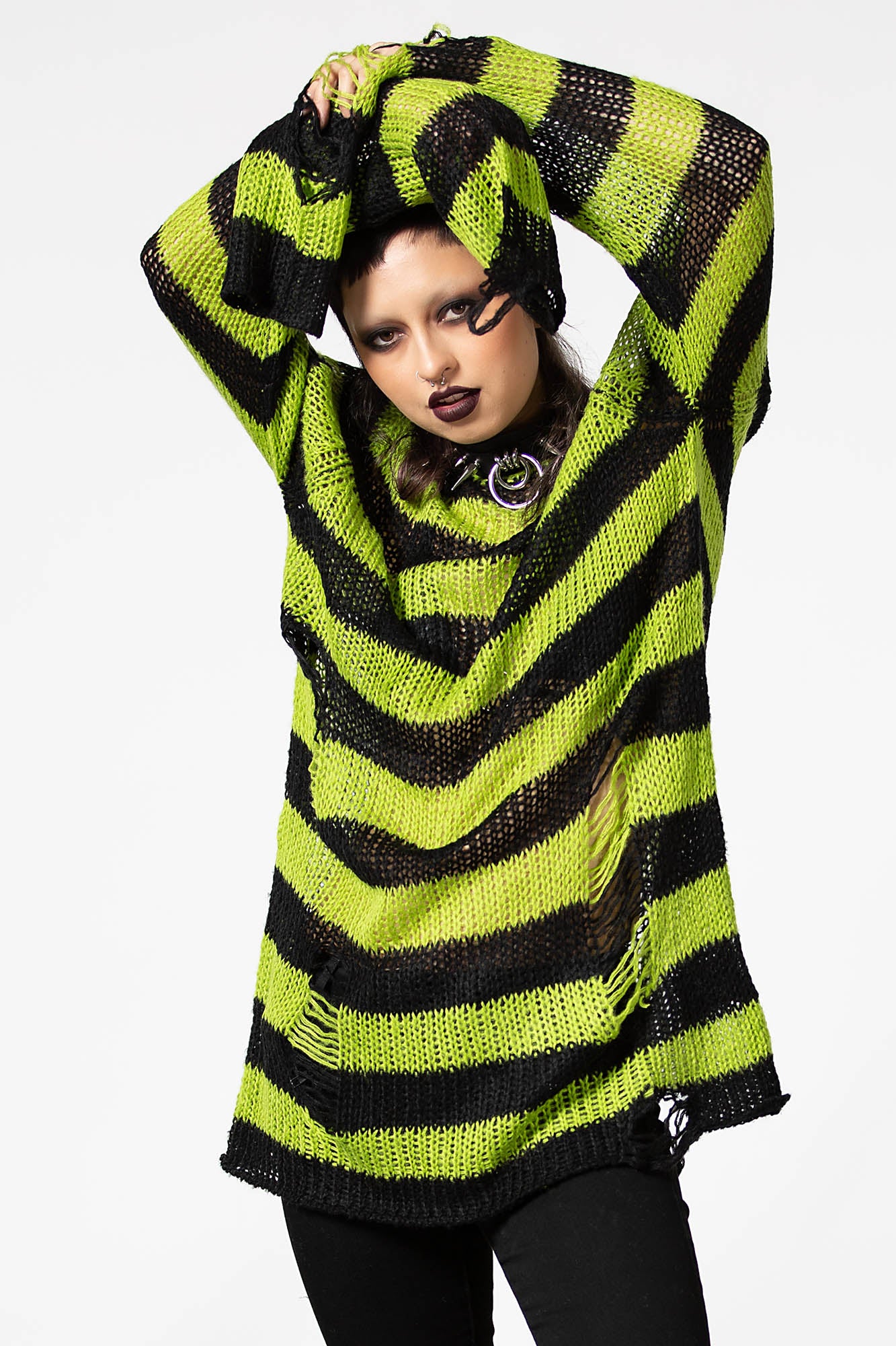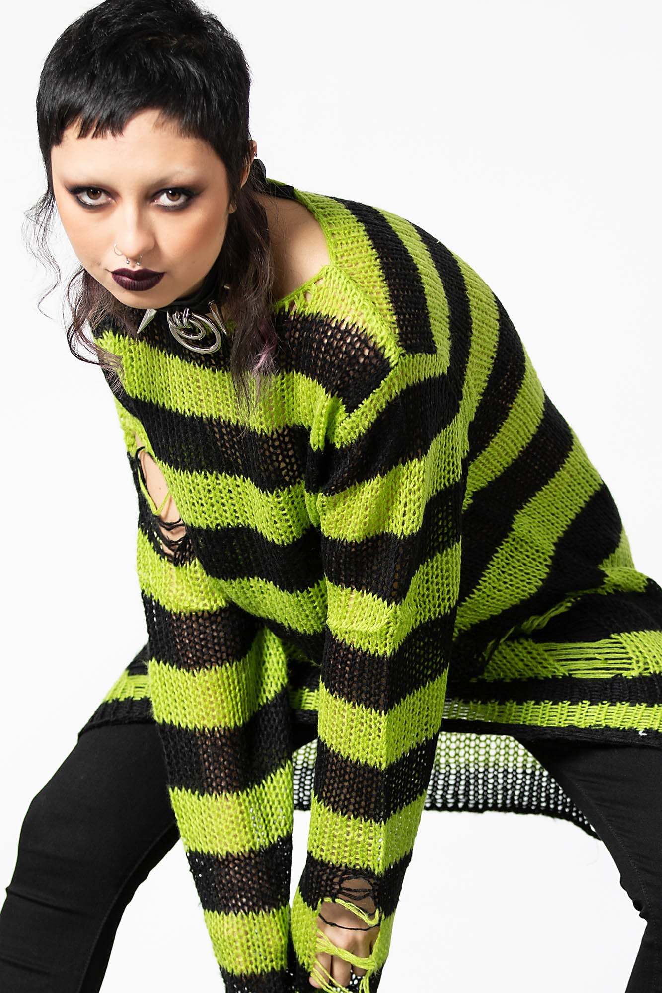 SLIMER.- Luxe Soft Knit.- Contrast Stripe.- Long-Length Shape.- Distressed Detailing + Back.- Relaxed Fit.Wash Cold - Gentle Cycle.with KILLSTAR Branding, 100% Acrylic.