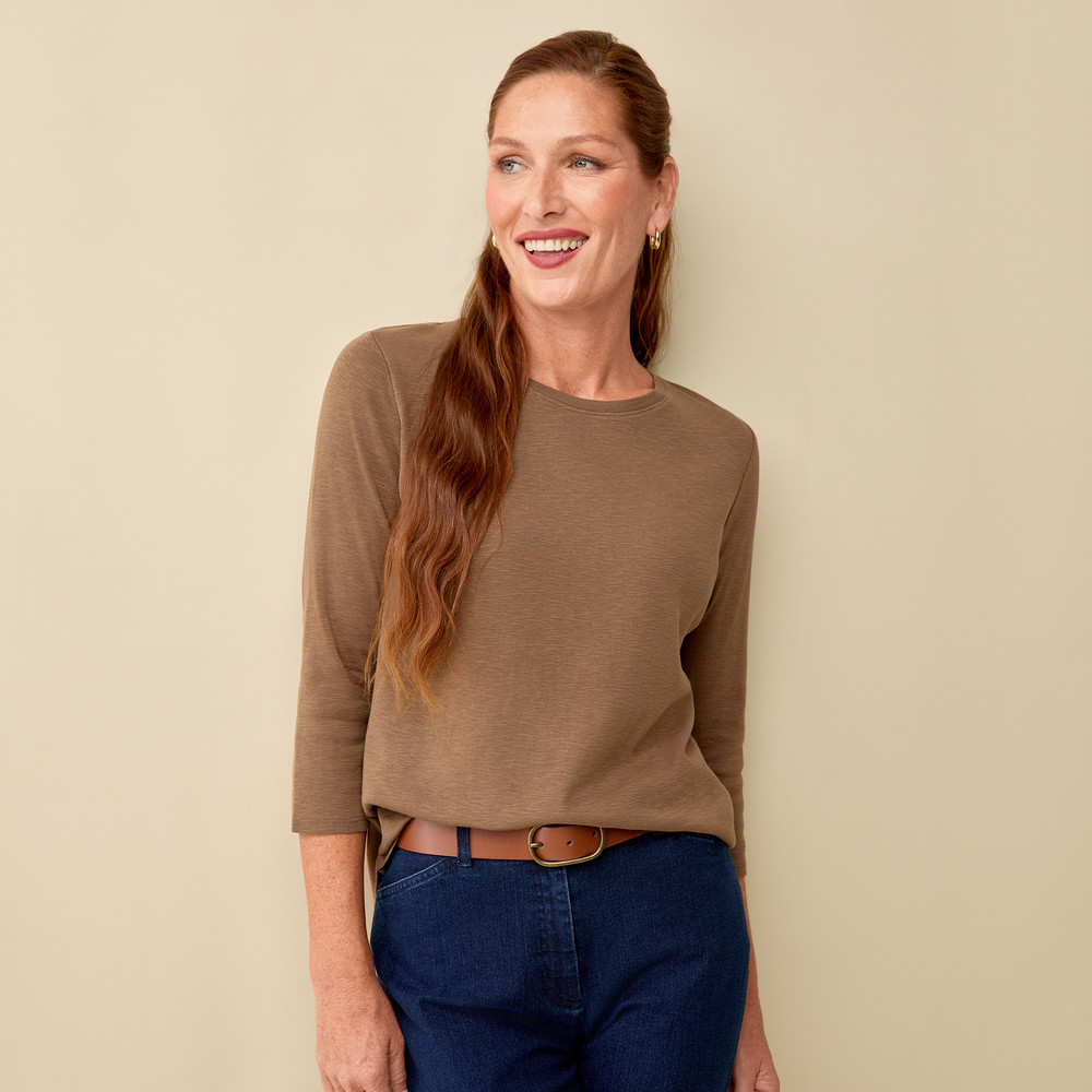 Slightly relaxed with extra room at bust & waist to softly shape the body
