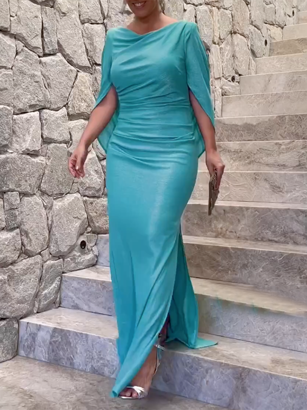 Solid Color Split-Side V-Back Long Sleeves Maxi Dresses