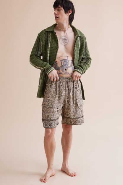 The comfy elastic waistband ensures a perfect fit, while two side hip pockets and front cargo flap pockets add a practical touch for your essentials. Made in India with care, these rayon shorts bring a blend of boho style, eco-conscious craftsmanship, and everyday functionality to your wardrobe.