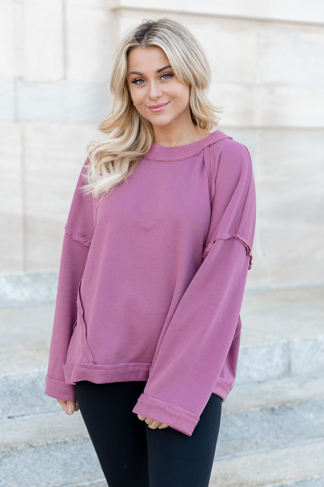 Up For Anything Berry French Terry Pullover