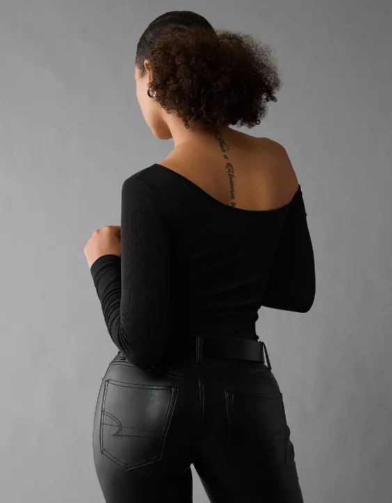 AE Long-Sleeve Asymmetrical Off-The-Shoulder Bodysuit
