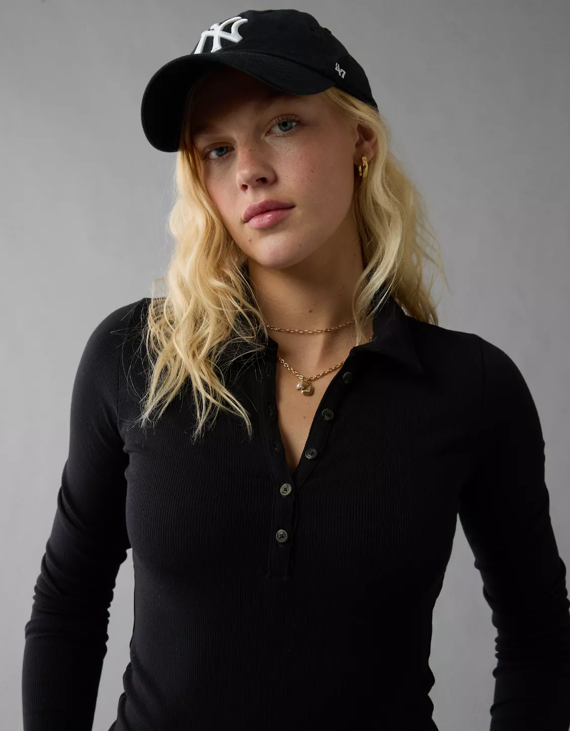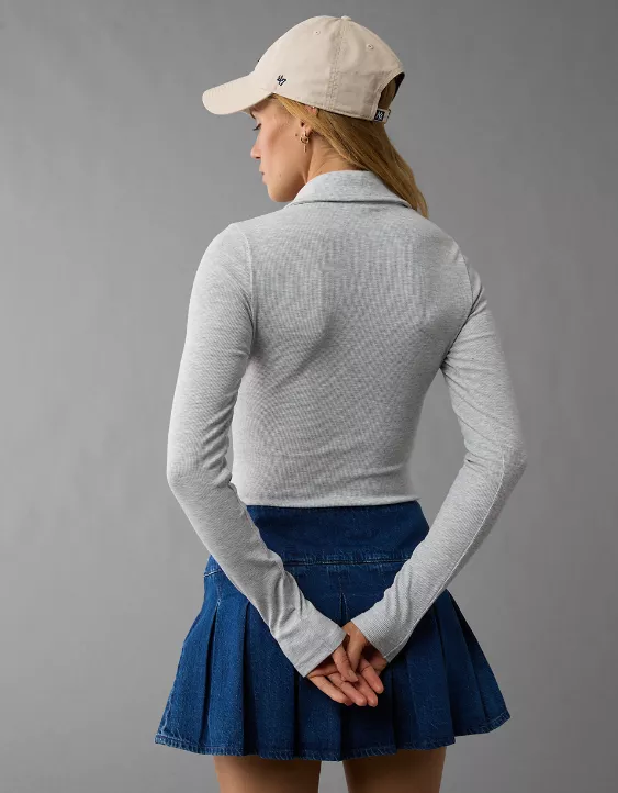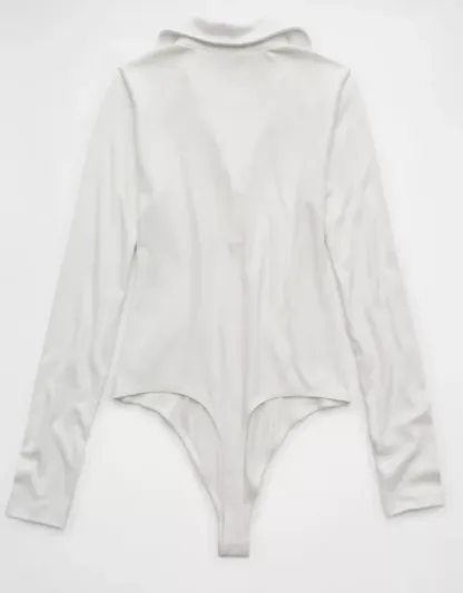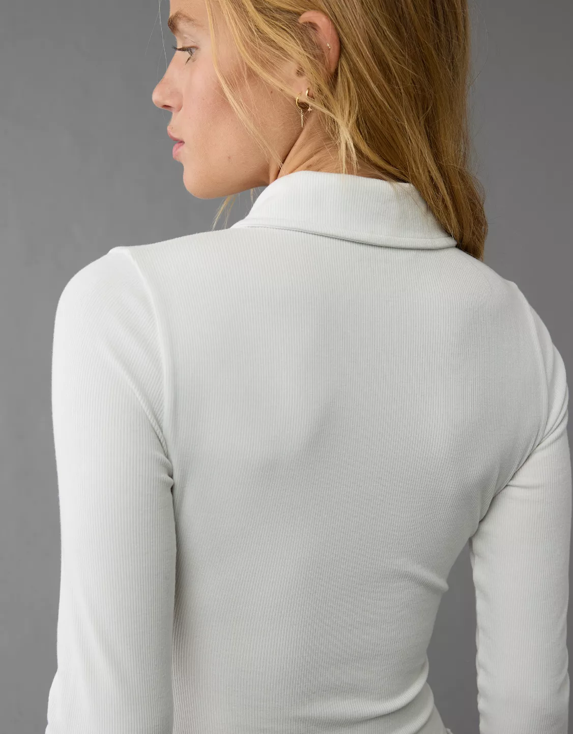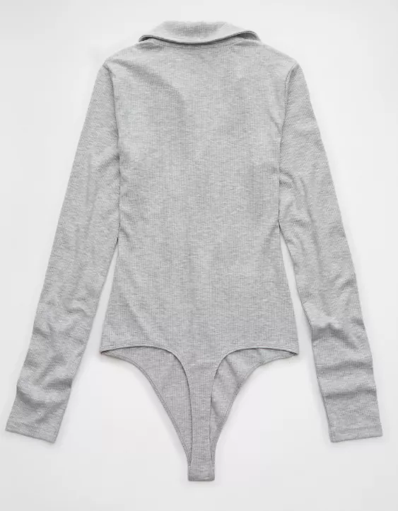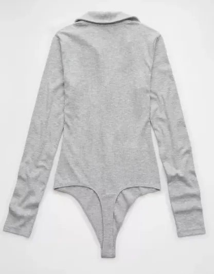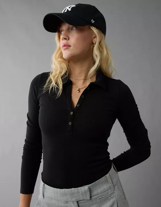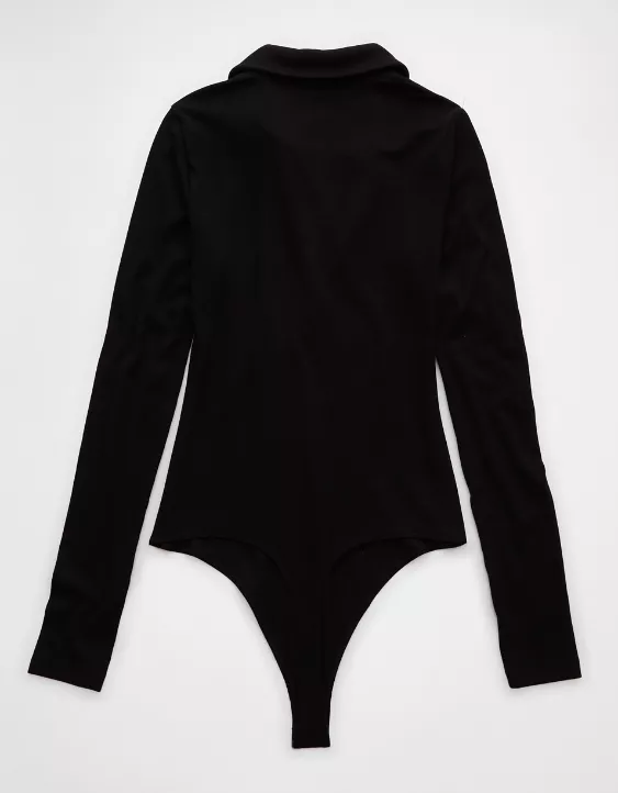 Your new go-to top, featuring a perfectly preppy collared neck and a thong bottom for a clean look.