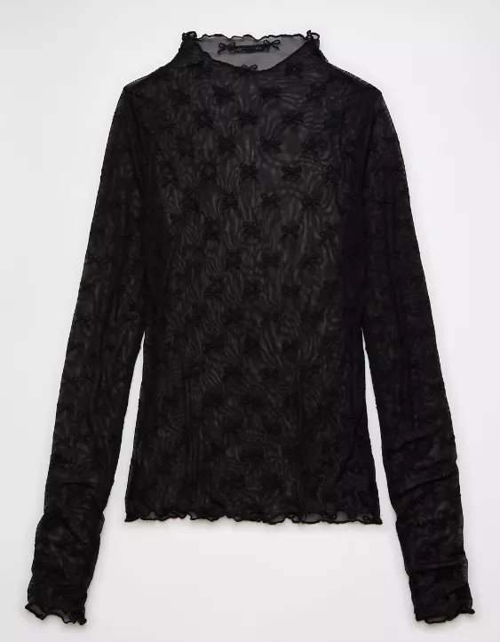 Edgy meets coquette in this bold going out top, featuring a see-through mesh with a bow design.