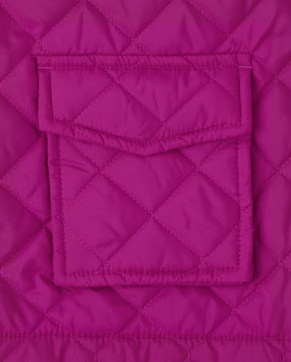 • FEATURES: Water-resistant shell, lining side-brushed for softness & anti-pilling, zip-front, snap-flap patch pockets, chin guard, allover quilting