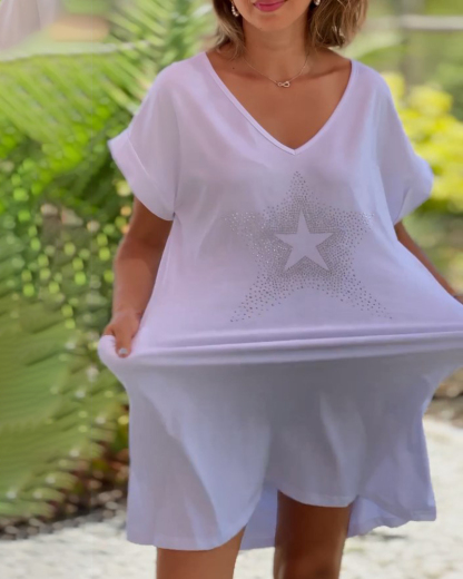 V-neck Hot Drill Short-sleeved Dress