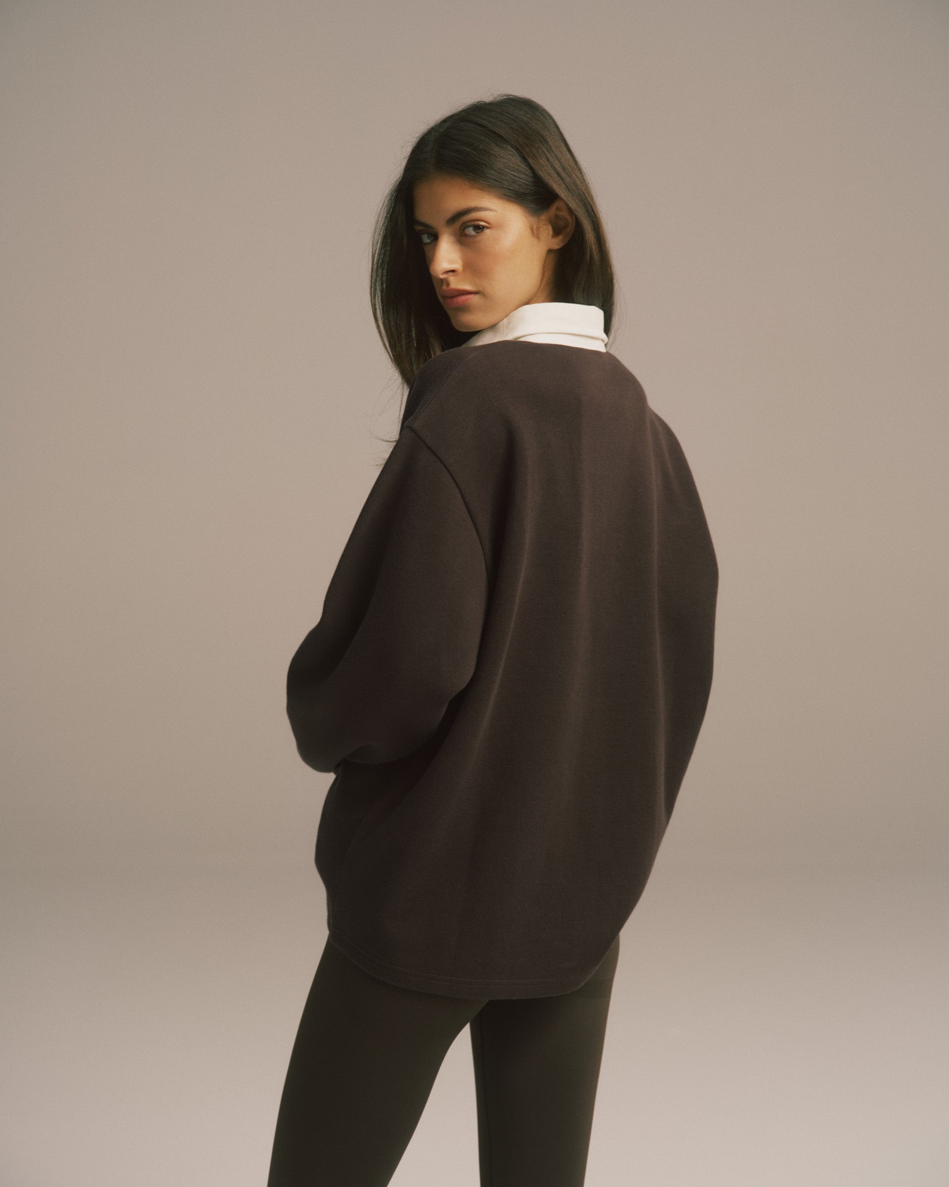 The Varsity Oversized Rugby Top is a timeless wardrobe essential. It has a relaxed polo collar, contrast details and branding on the front. Wear yours with the Ultimate Leggings for laid back days.