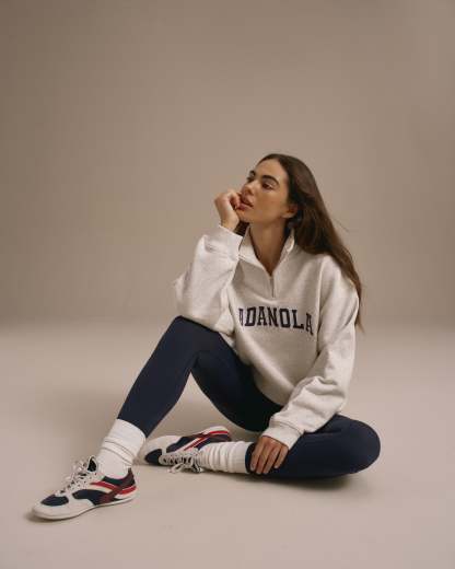 The Relaxed Funnel Neck Sweatshirt is the perfect mixture of comfort and style. This Half Zip is perfect for the outdoors, keeping you cool after your fave gym class. Featuring a Relaxed fit with dropped shoulders and a screen-printed varsity logo on the chest. Made from 100% Organic Cotton.