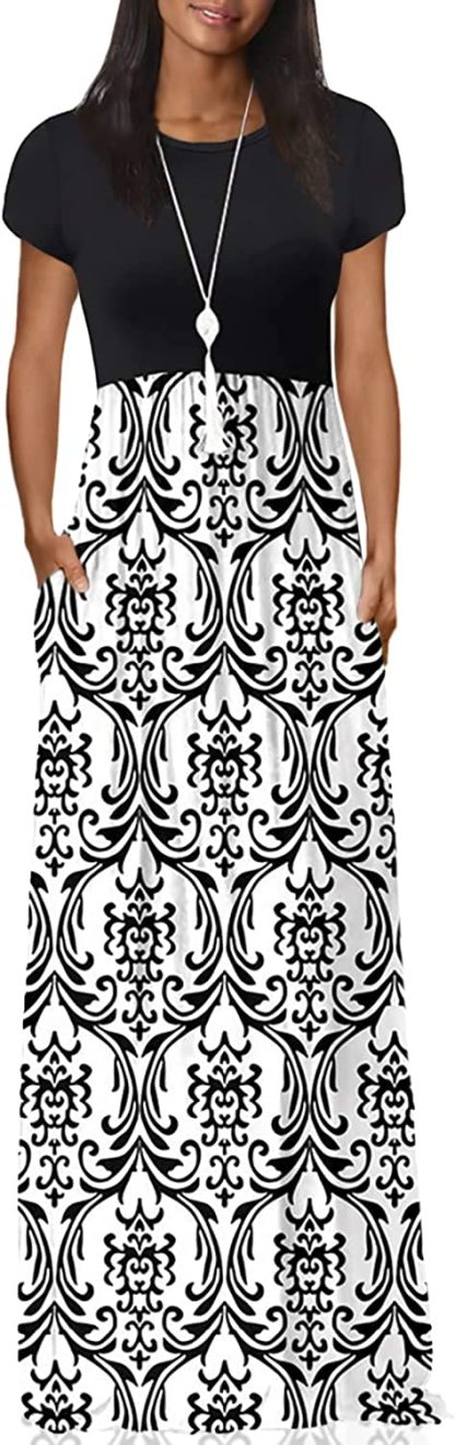 Women's Short Sleeve Loose Plain Maxi Dresses Casual Long Dresses with Pockets