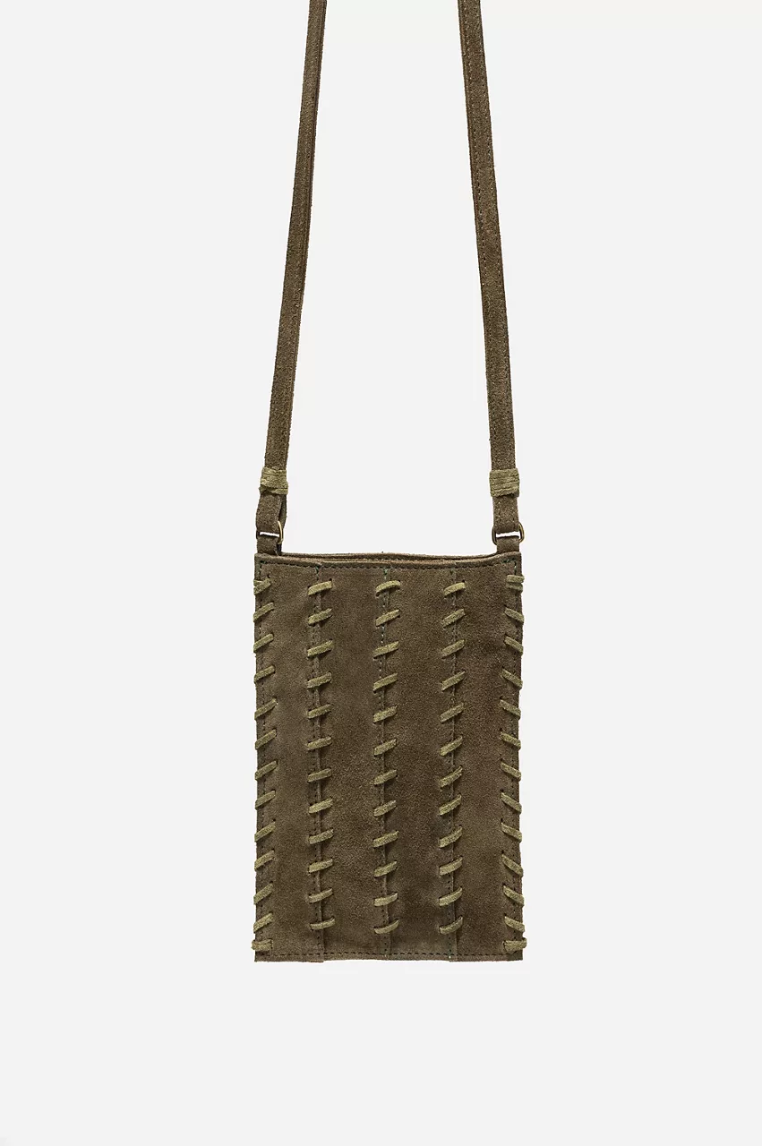 Crafted from 100% luxurious suede, the Whipstitch Cell Phone Crossbody is the perfect accessory for travel. Featuring a narrow strap leading to a small bag with a decorative tassel, this low profile bag is finished with an intricate whipstitch. Layer over a tee and shorts and pair with fashion sneakers for a day of sightseeing.