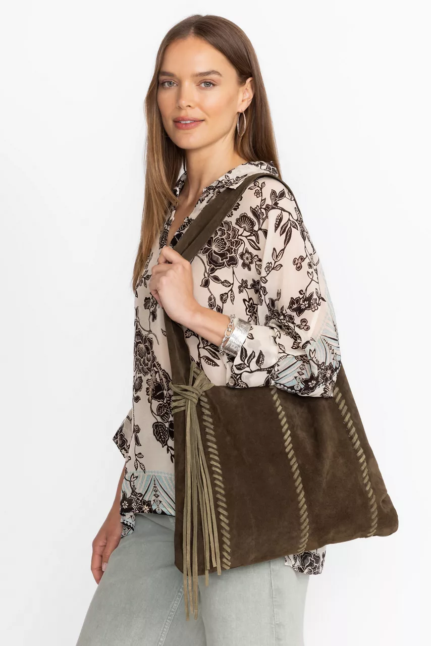 Crafted from 100% suede, the Whipstitch Hobo Bag offers a fresh take on a classic handbag silhouette. Featuring a low-profile shoulder strap leading to a spacious interior, this luxurious bag is finished with an intricate whipstitch, and a decorative tassel. Wear as an accent to your daily casual look.
