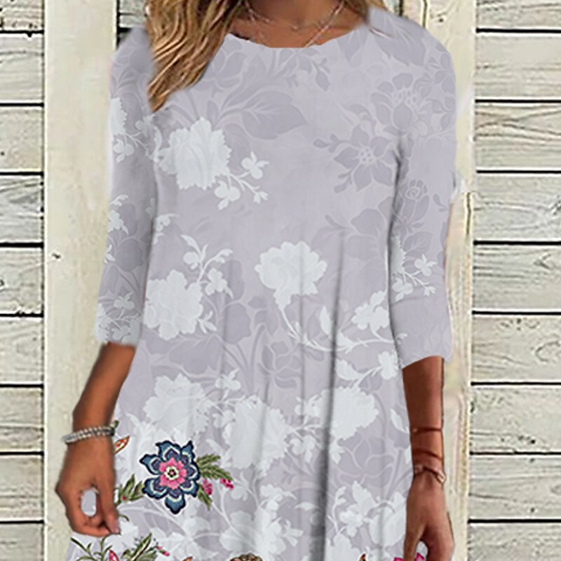 Women's Casual Dress Shift Dress Midi Dress Gray 3/4 Length Sleeve Floral Ruched Winter Fall Autumn 2023 S M L XL XXL 3XL