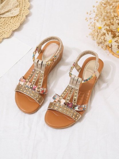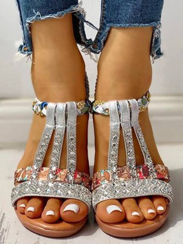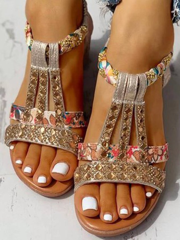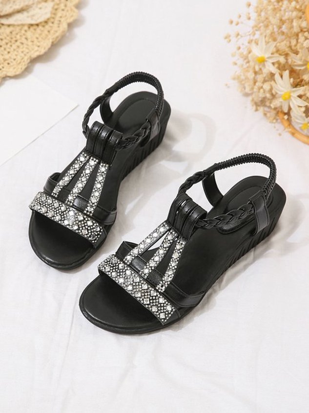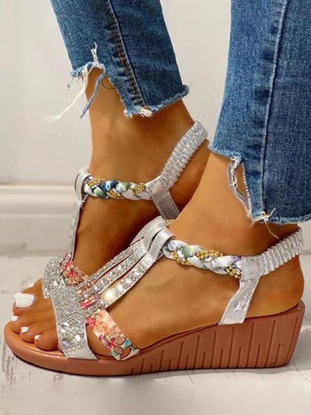 Boho Vacation Rhinestone Braided Beach Sandals