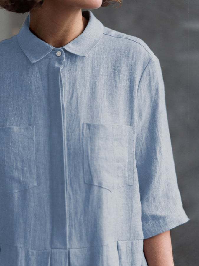 Women‘s Casual Elegant Double Pockets Half-Sleeve Dress