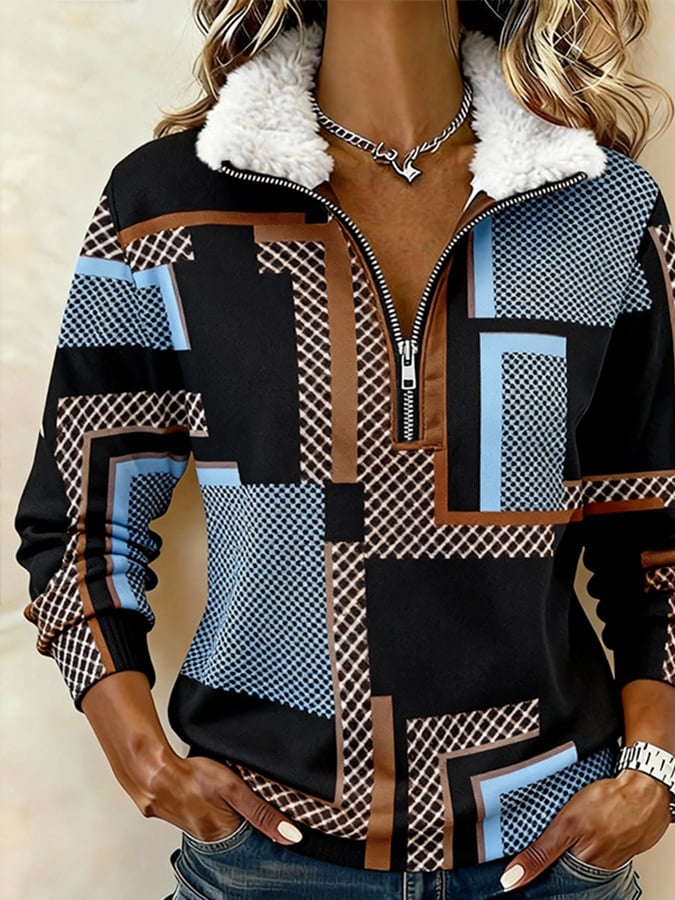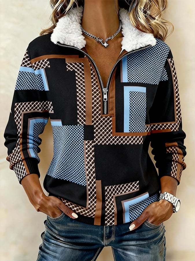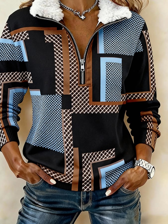 Women'S Casual Loose Color-Blocked Print Sweatshirt