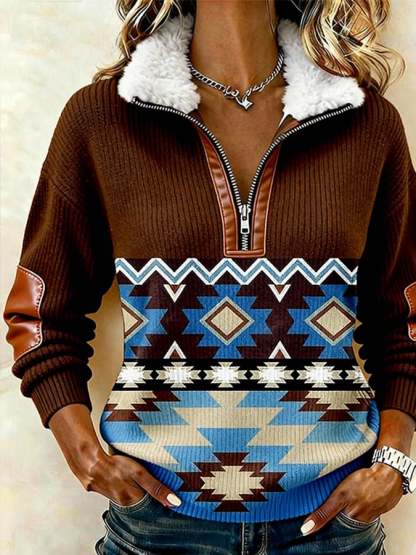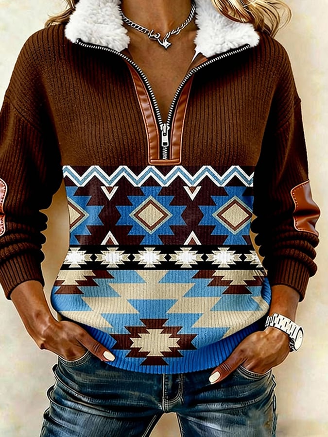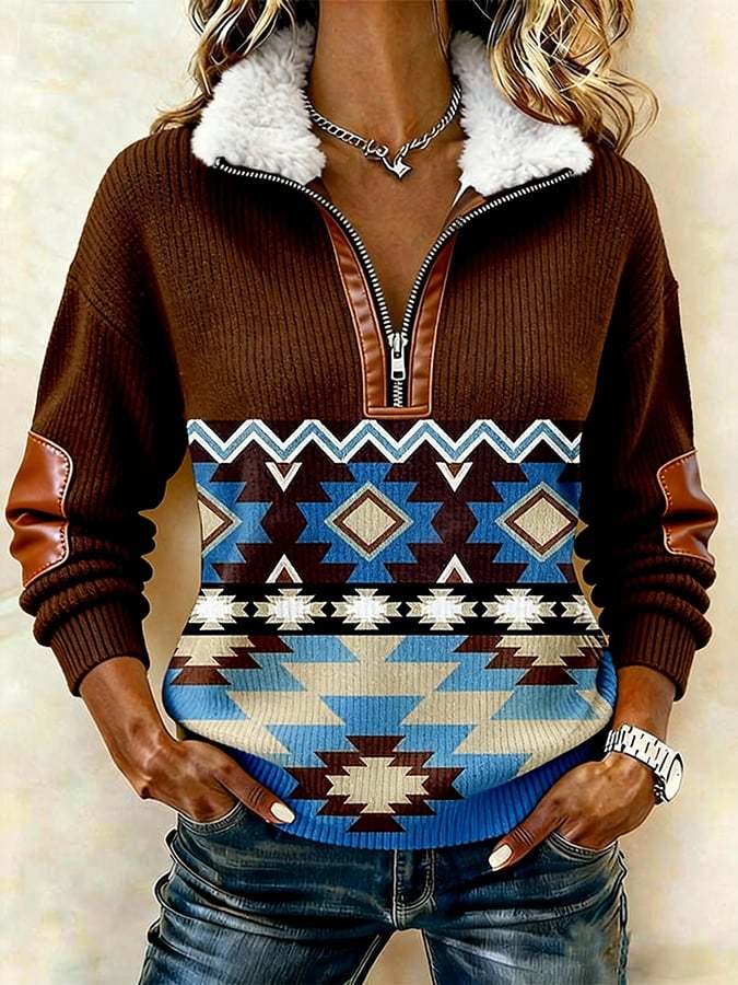 Women'S Casual Loose Color-Blocked Print Sweatshirt