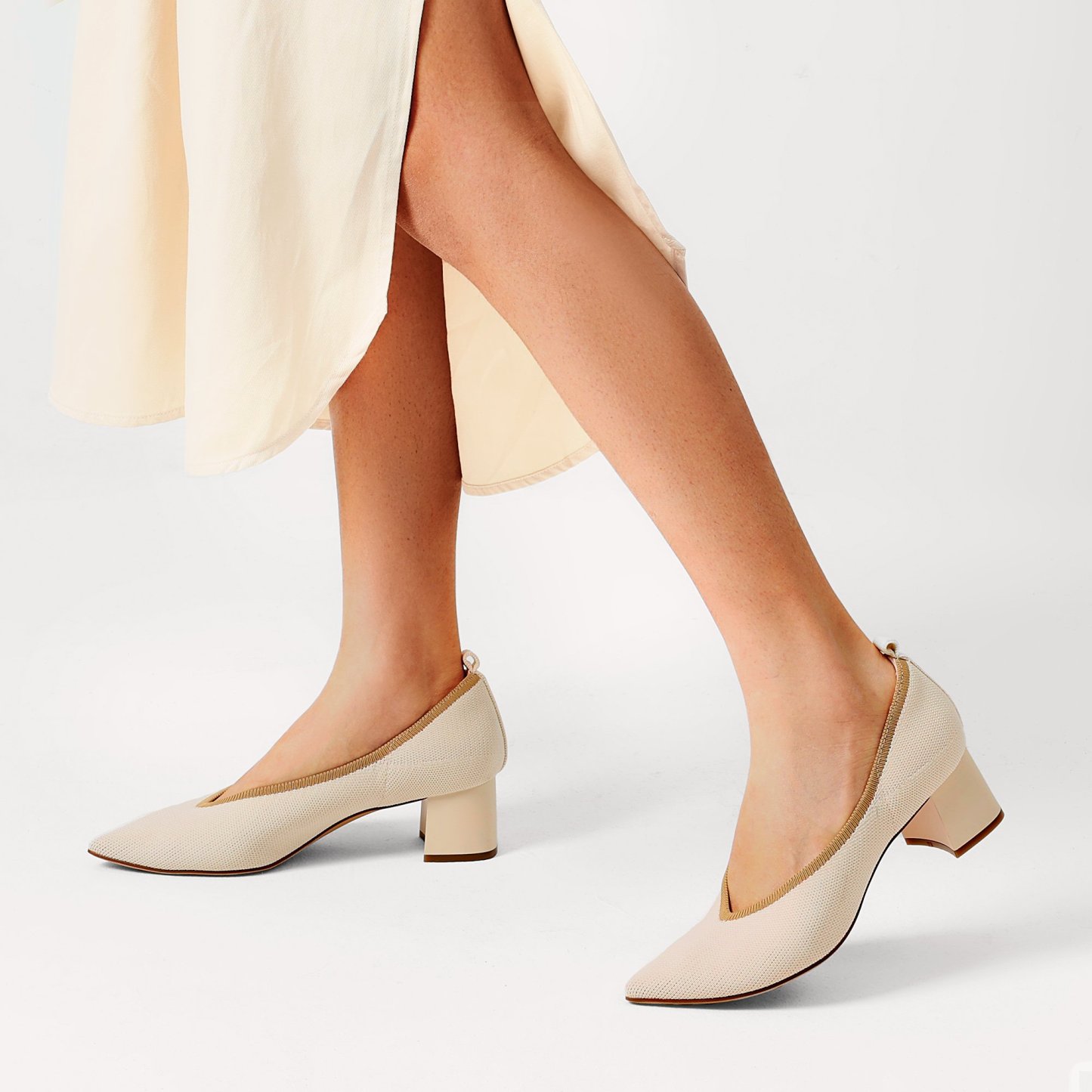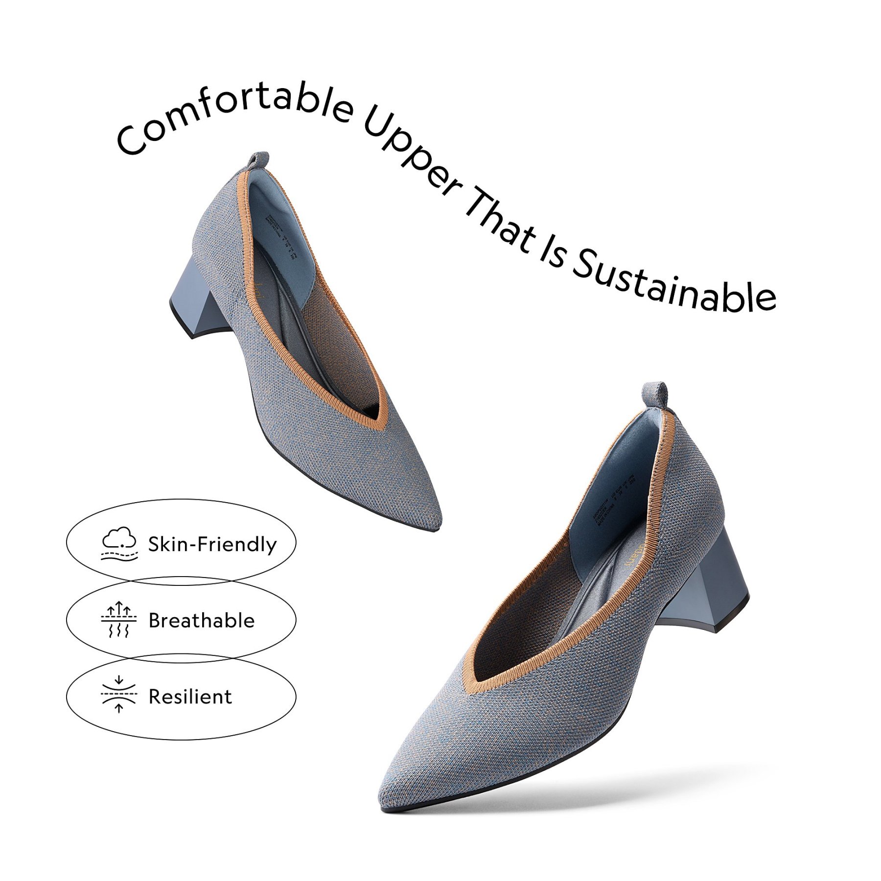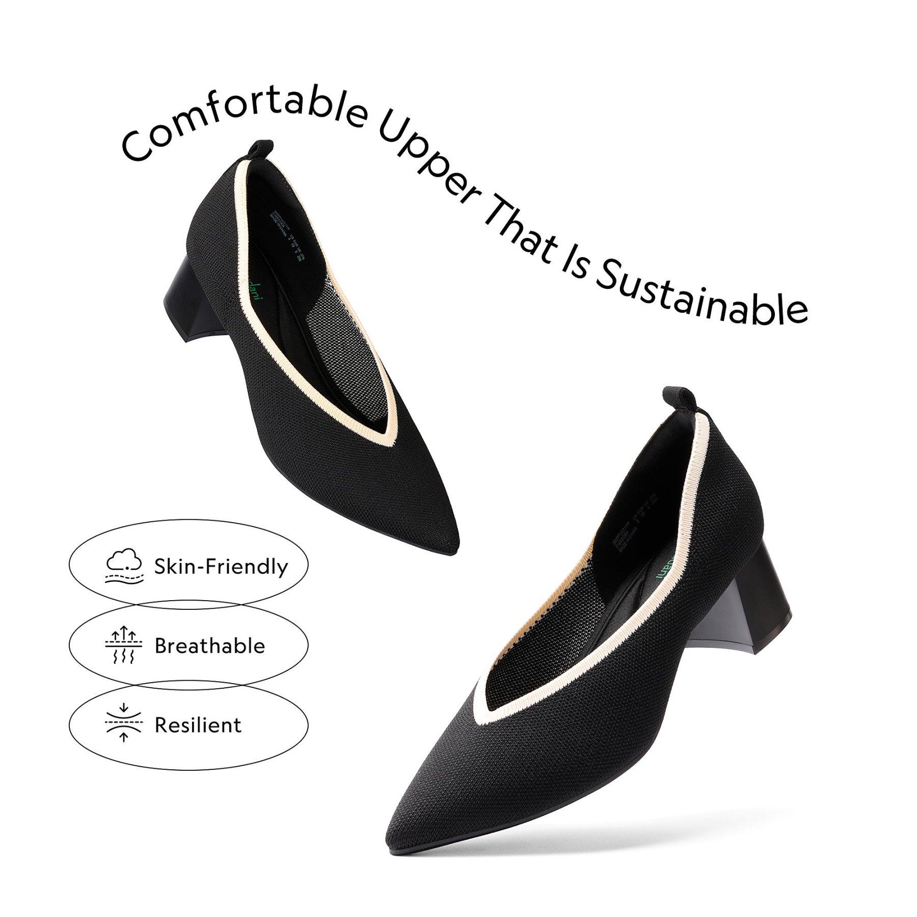 - Sustainable Knitted Upper: Crafted from stretchable and precisely-woven threads made from recycled plastic bottles, these pumps are skin-friendly, flexible, and sustainable.