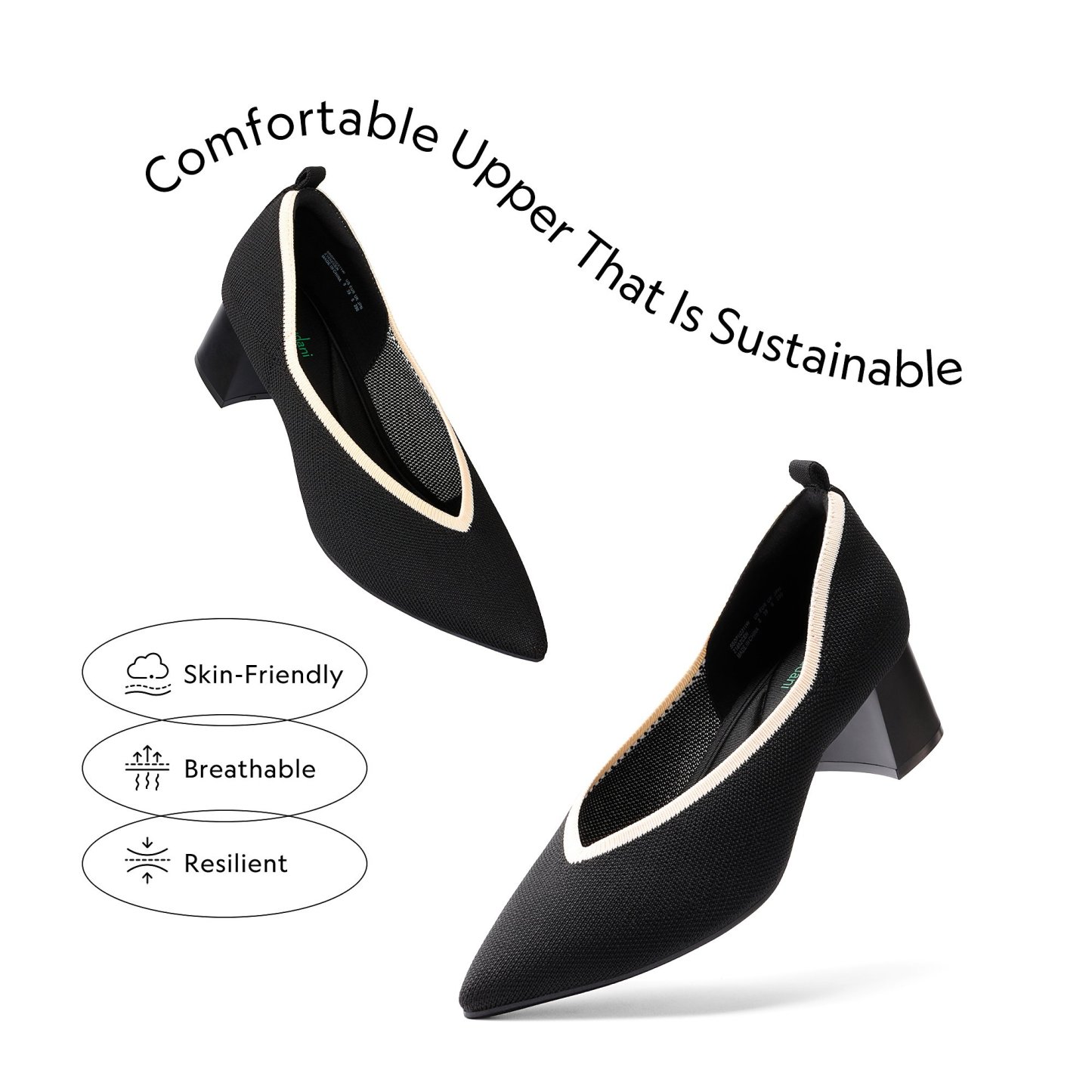 These simple yet elegant knit pumps are perfect for women who prefer a polished and sophisticated appearance. The skin-friendly knitted upper, cushioned insole, soft heel protection, and comfortable chunky heel, combined, deliver the utmost comfort for your feet.