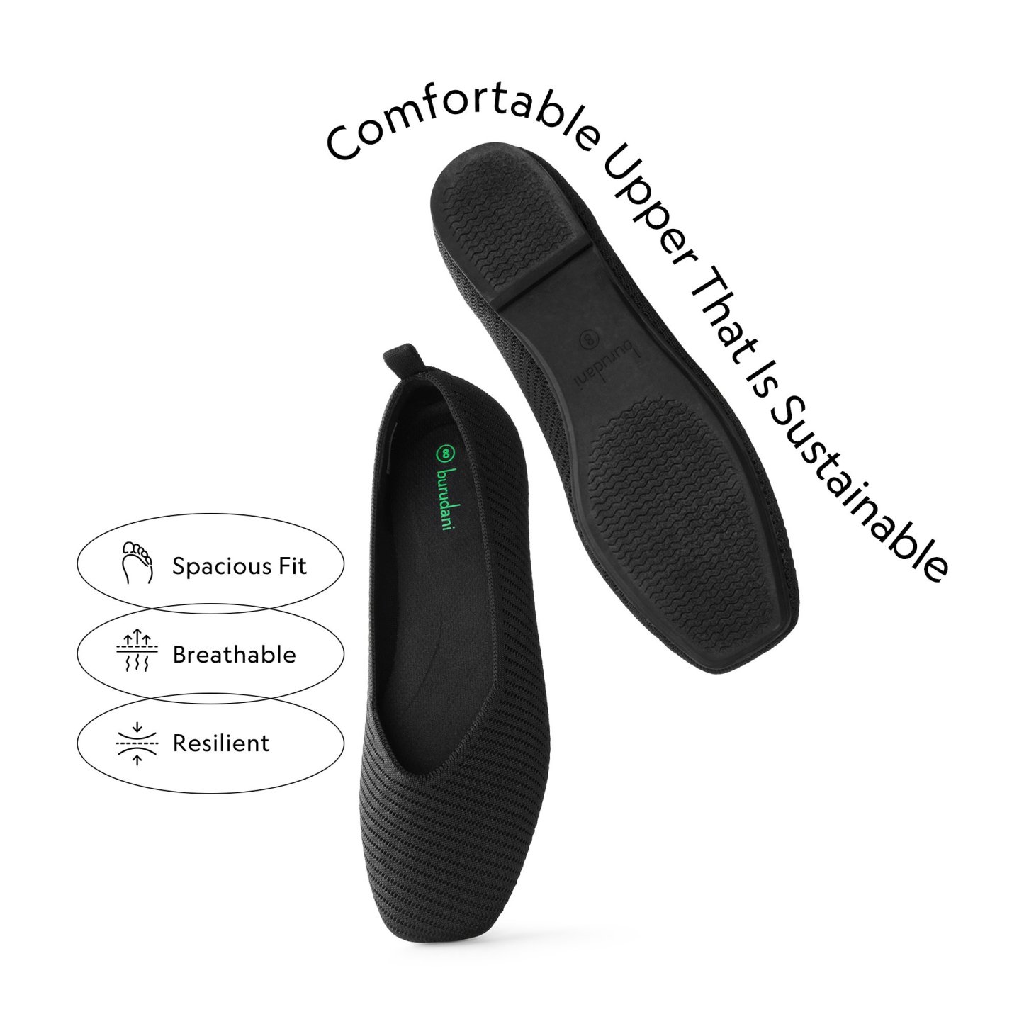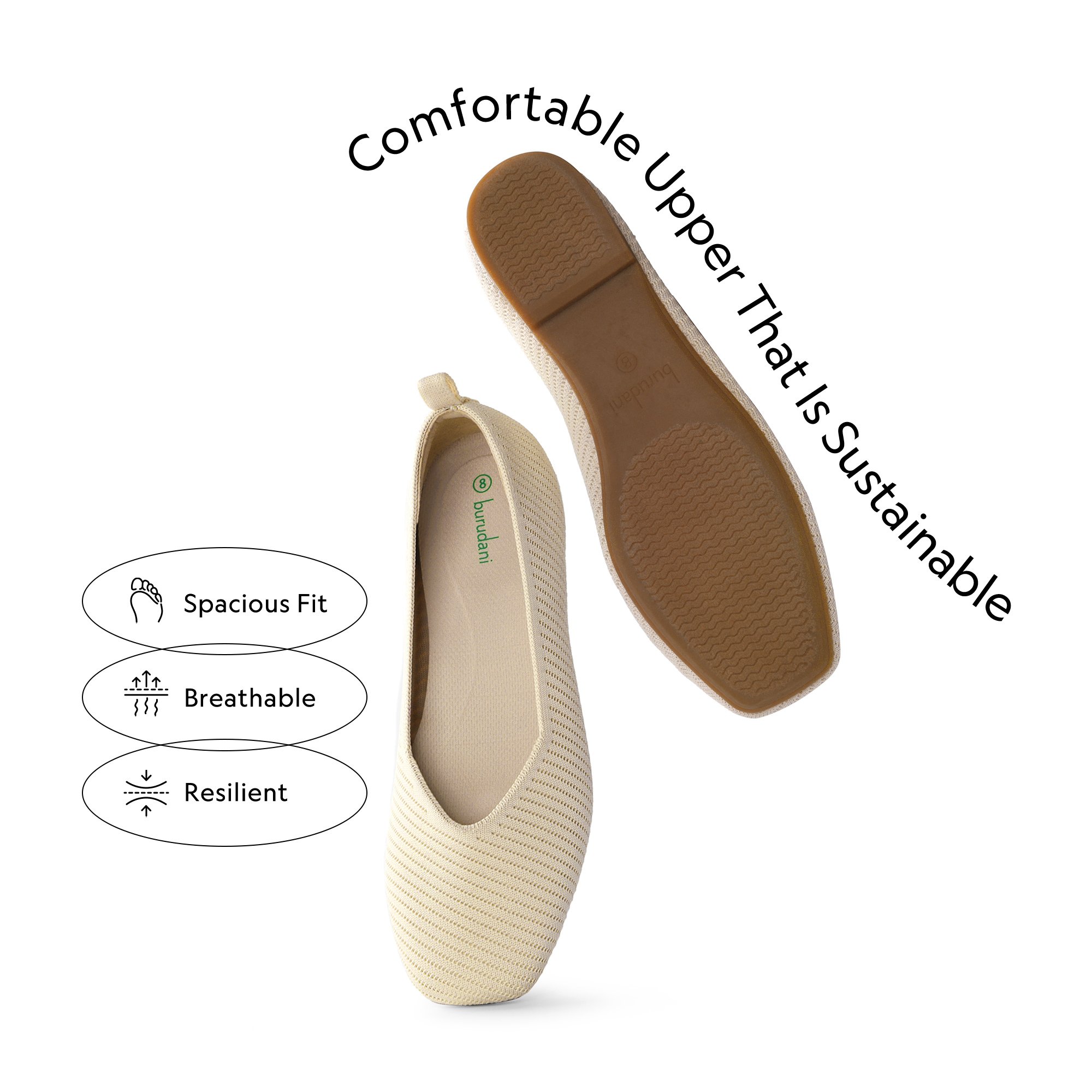 - Sustainable Upper: Made with eco-friendly threads that are made from recycled plastic bottles. These flats are soft, breathable, and machine washable.