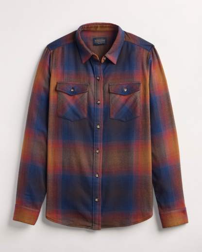 A nod to the West in soft DoubleBrushed Flannel, this shirt has a peaked back yoke, two chest pockets with peaked flaps, buttons, and deeply curved shirttail hem.