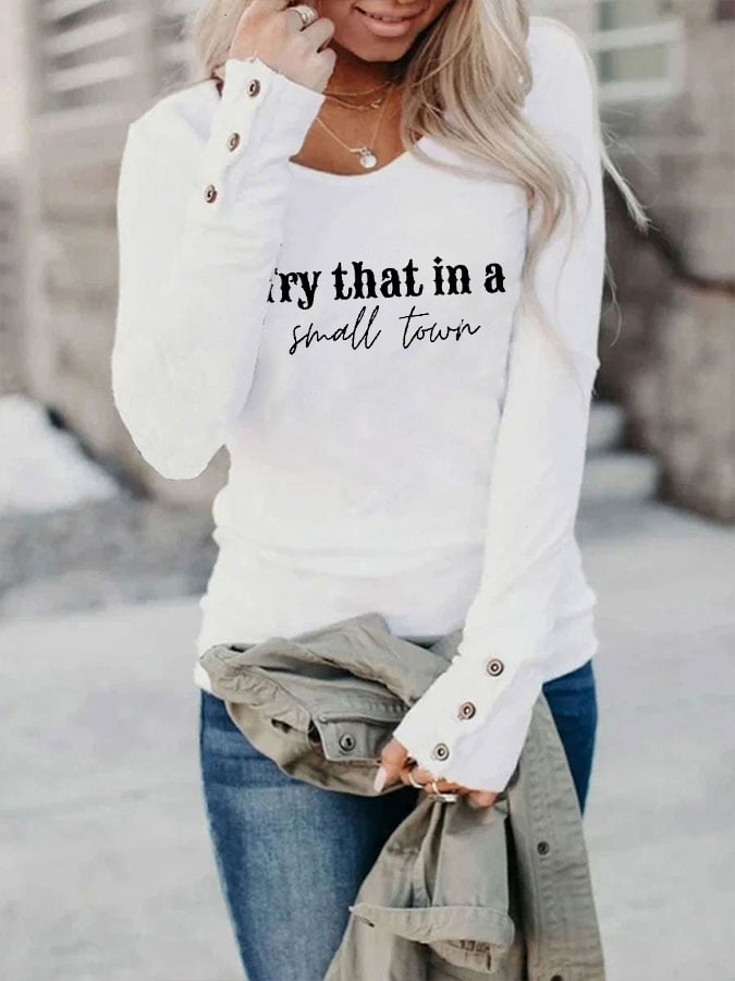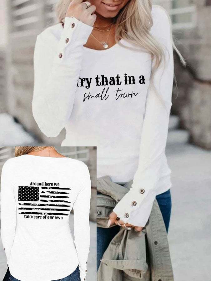 Women's Try That In A Small Town American Flag Long Sleeve T-Shirt