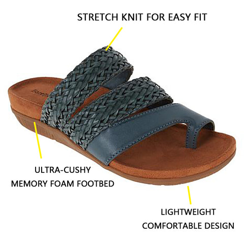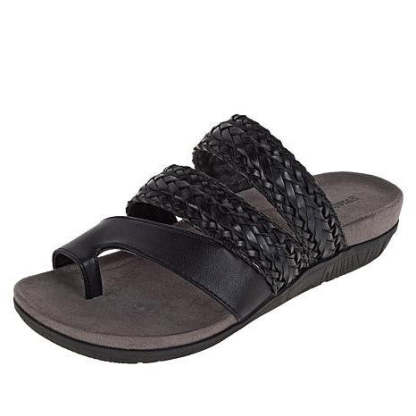 Simply, slip them on and snug your feet in place around the toe clasp for enhanced support.