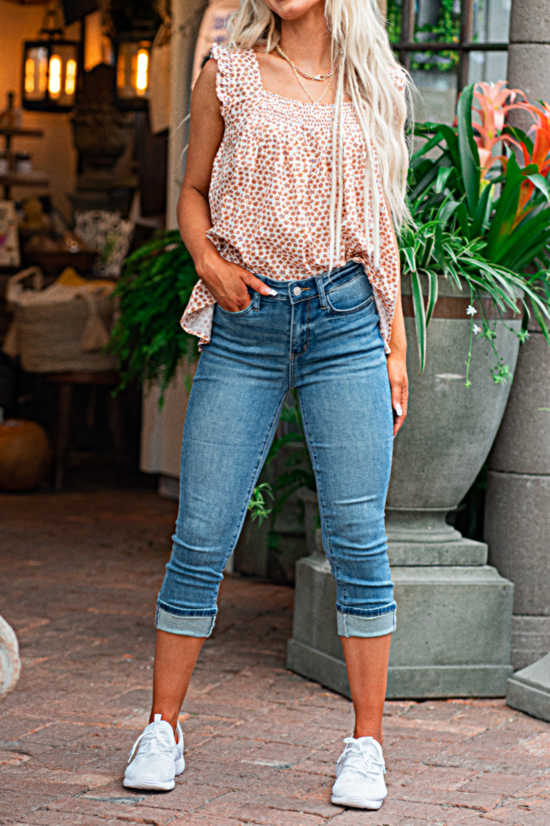 Zip Fly Mid Waist Cropped Skinny Jeans