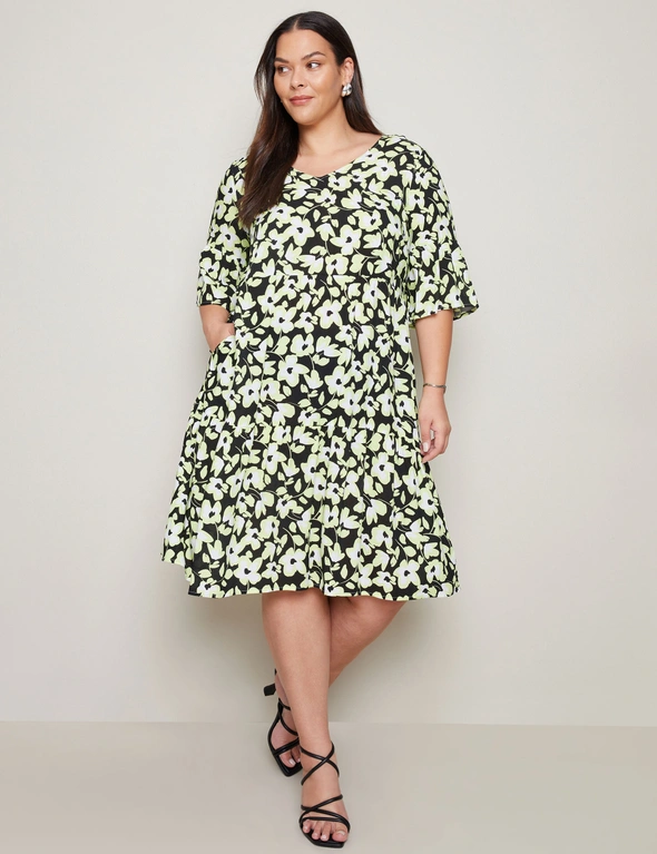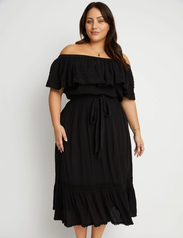 Beme Lace Detail Woven Peasant Swing Dress