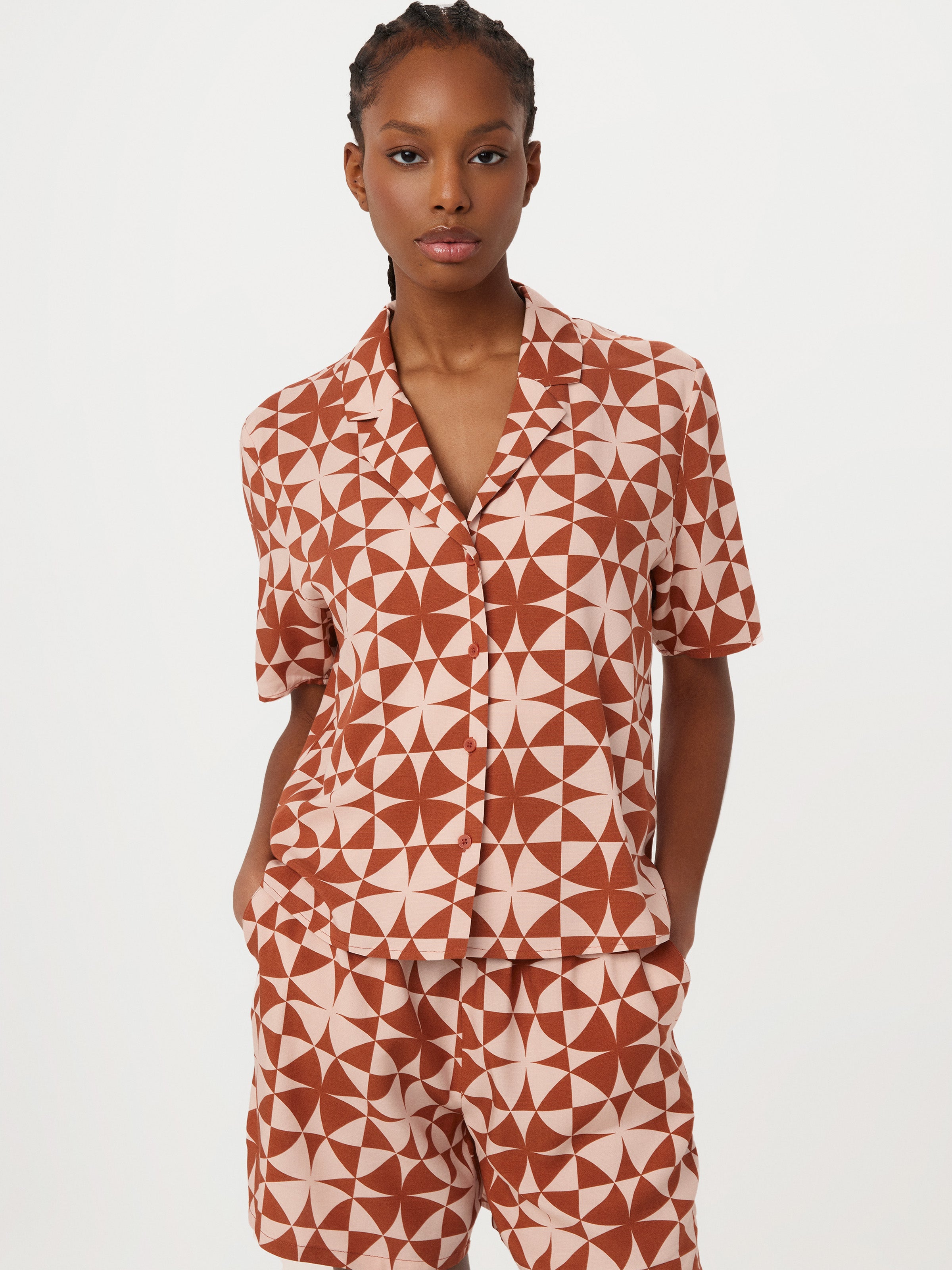 The Printed Camp Collar Blouse in Mahogany