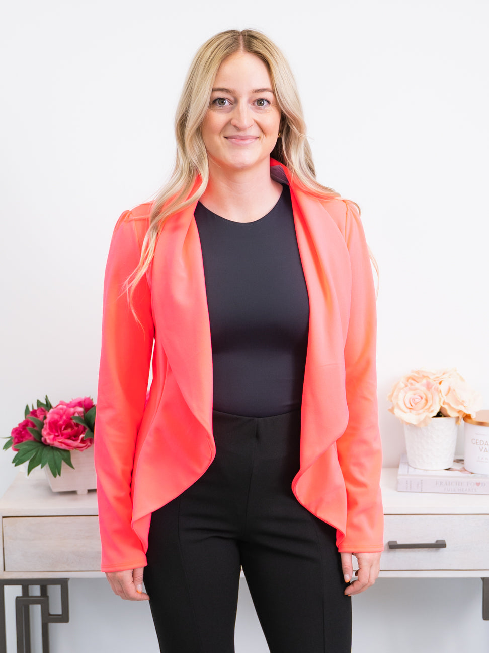 Annalise Draped Blazer | SOLID | Neon Pink