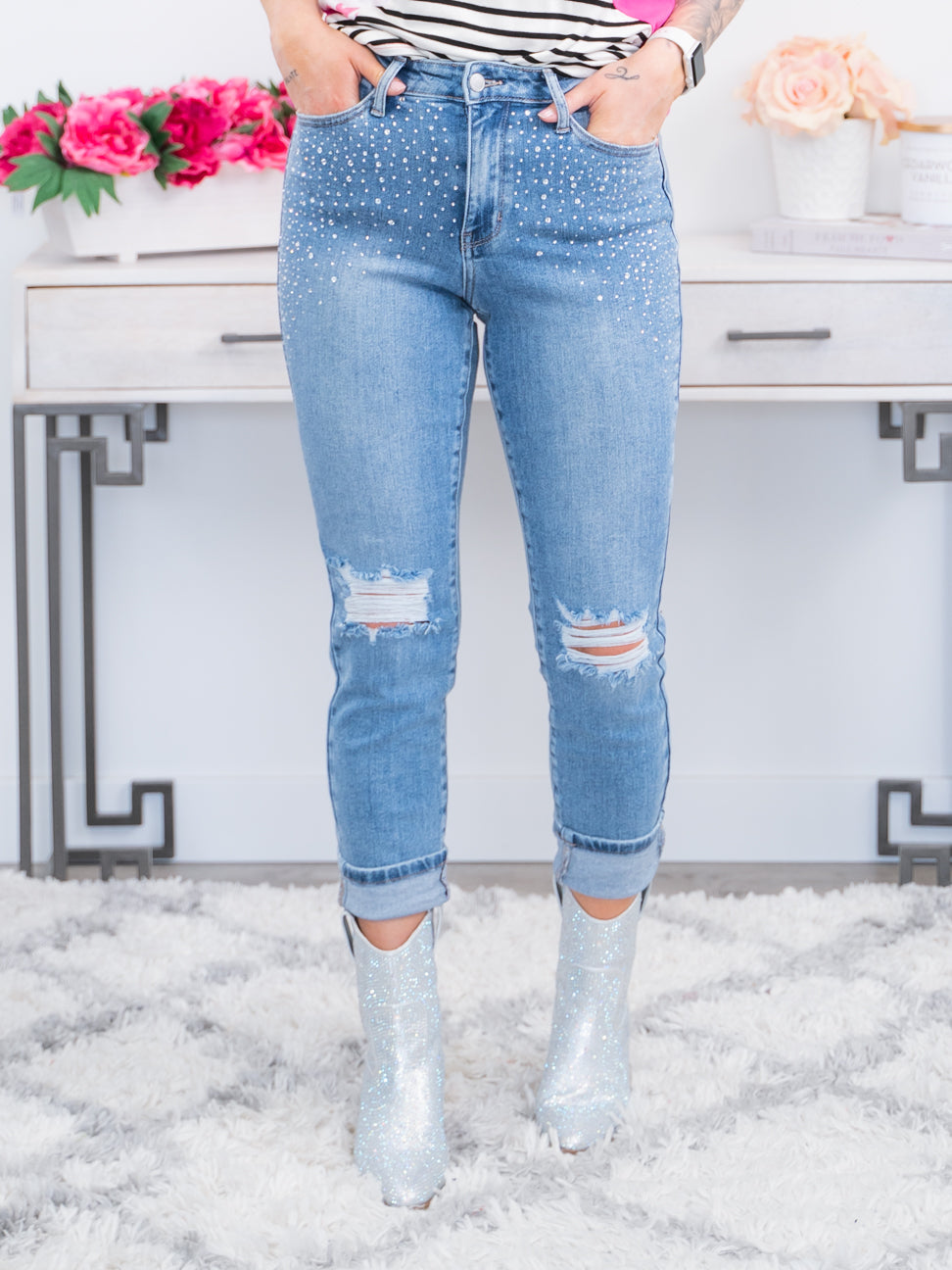 Judy Blue Denim | High Waist Rhinestone Embellished Slim Fit | Loretta