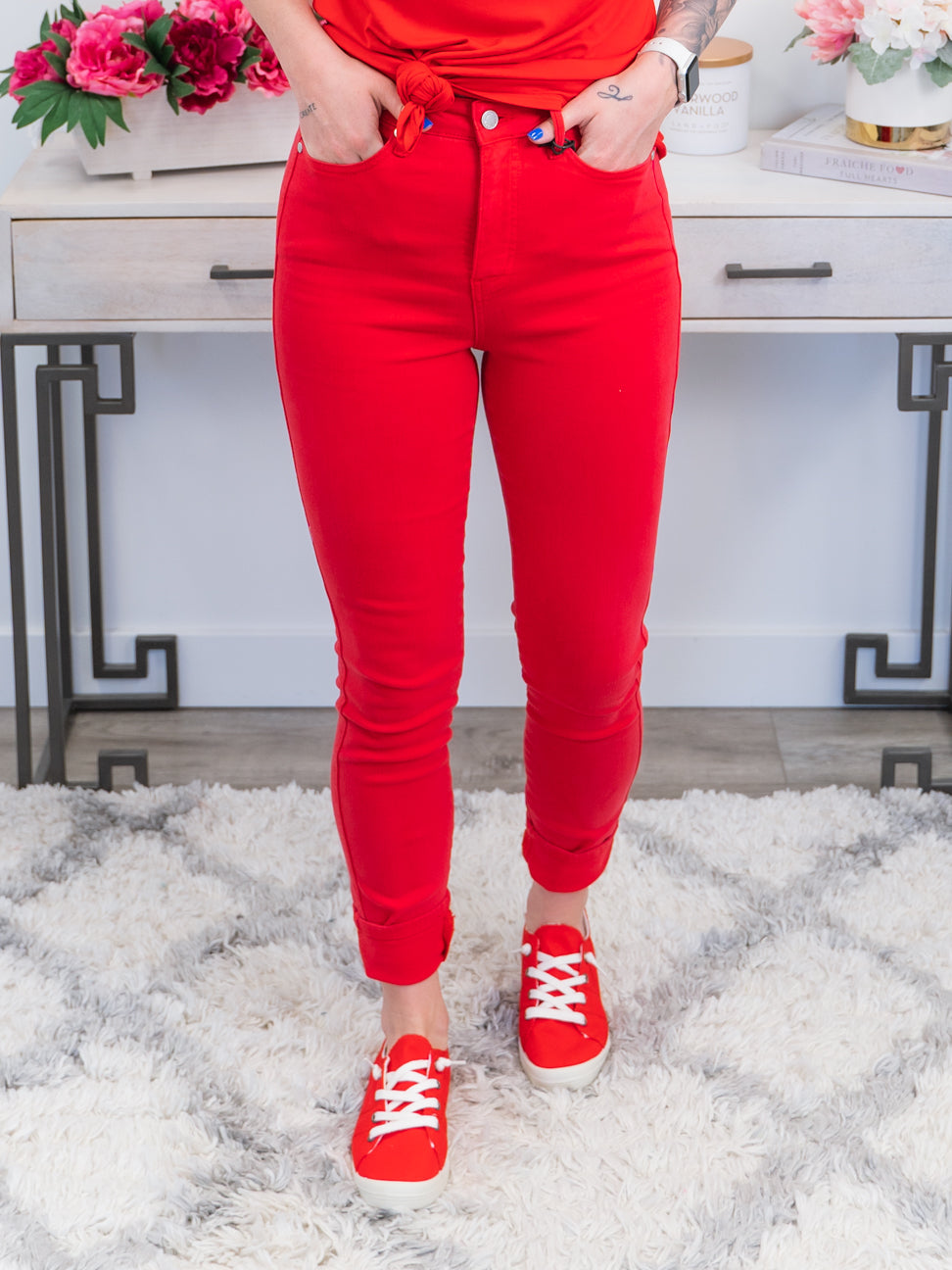 Judy Blue Denim | Hi Waist Tummy Control Red Dyed Skinny | Rufus