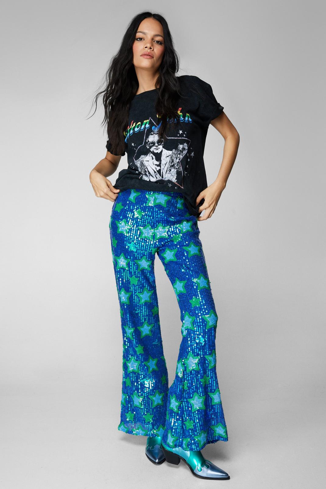 Star Sequin Flare Pants